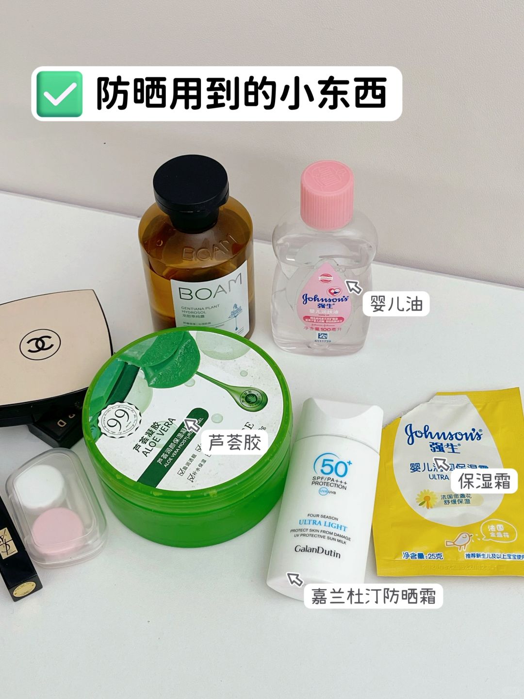 我不光只涂脸上,咱们就是要全都照顾到,身上也要涂上别亲疼!我每次都是两瓶一起入手的还挺实惠,除此之外为了不晒黑我还会进行晒后修复,用到的东西都在图3啦!