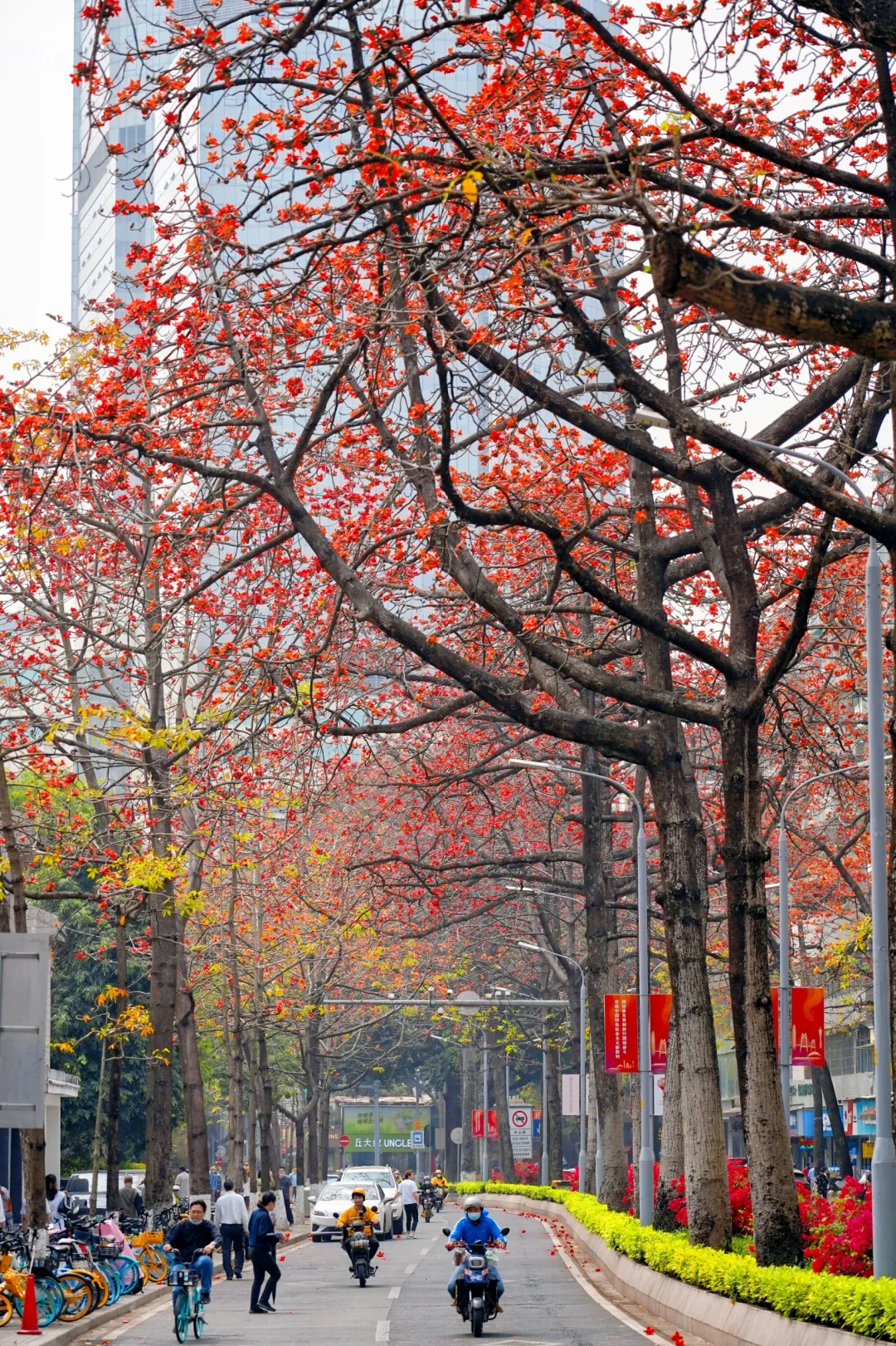 可以轻松拍到木棉电车🚉从木棉花下驶过的照片
