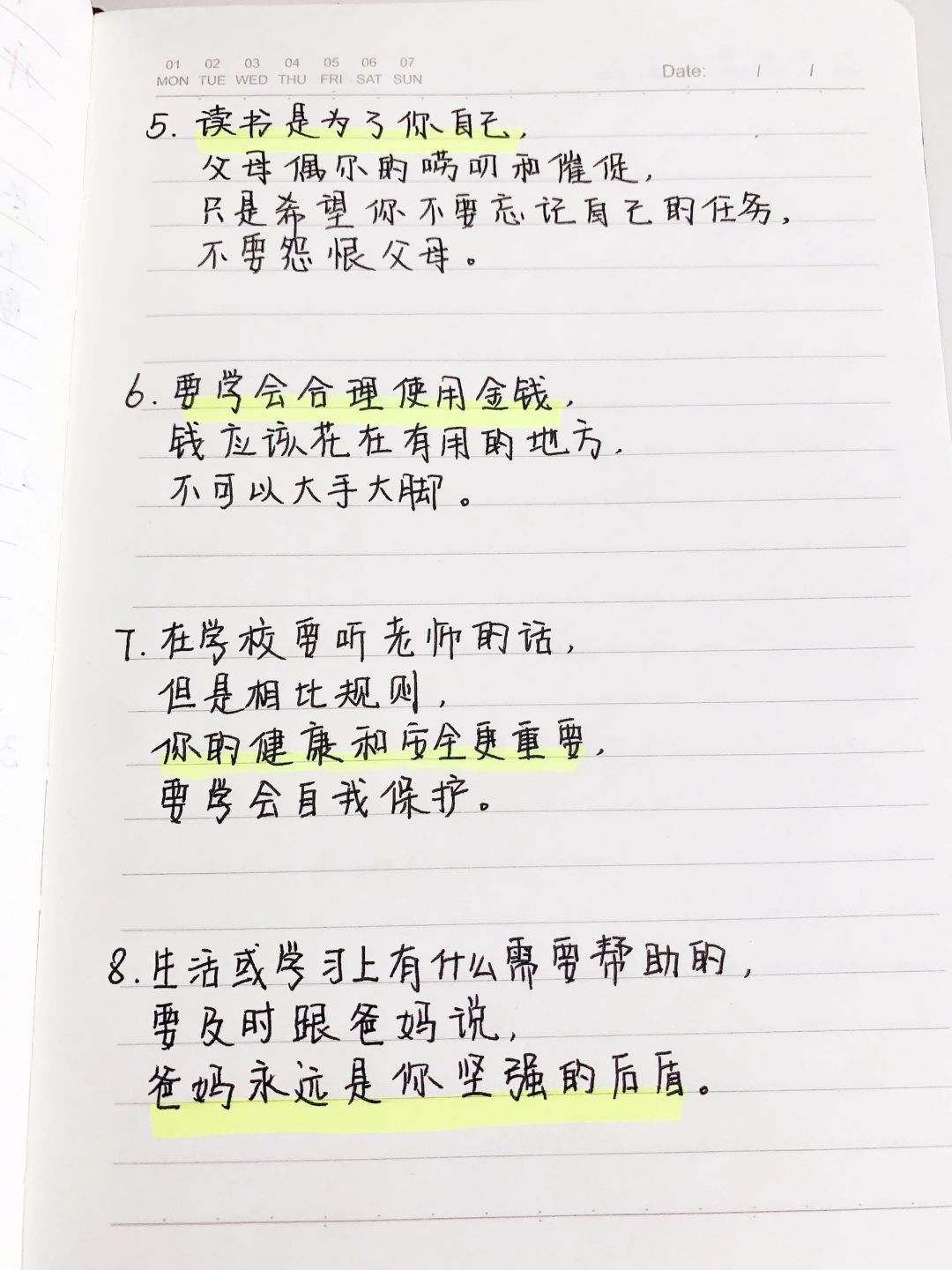 孩子教育 育儿 手写 开学了 父母与孩子 开学必备 家庭教育 家有小学生 亲子教育 辣妈育儿经