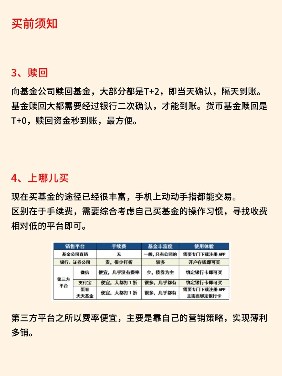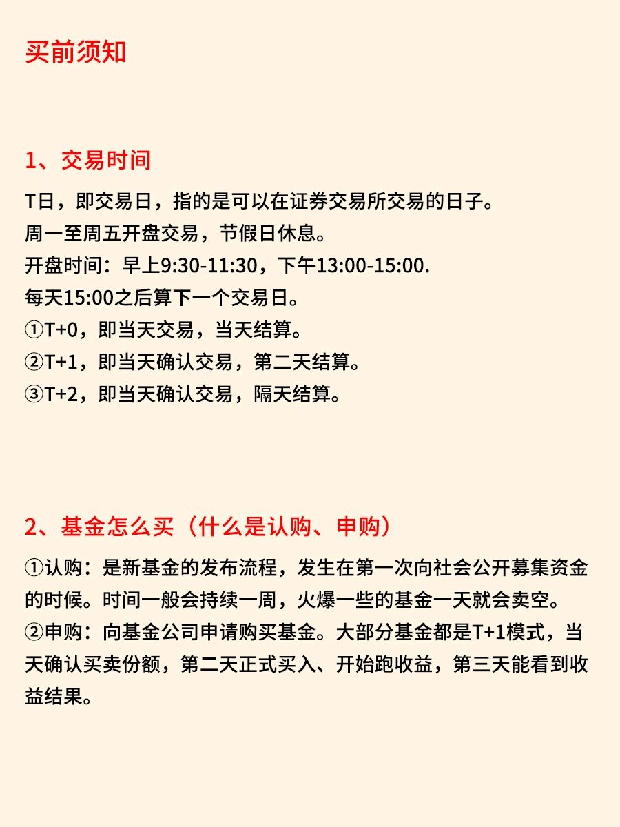 ②申购:向基金公司申请购买基金。大部分基金都是T+1模式,当天确认买卖份额,第二天正式买入、开始跑收益,第三天能看到收益结果。