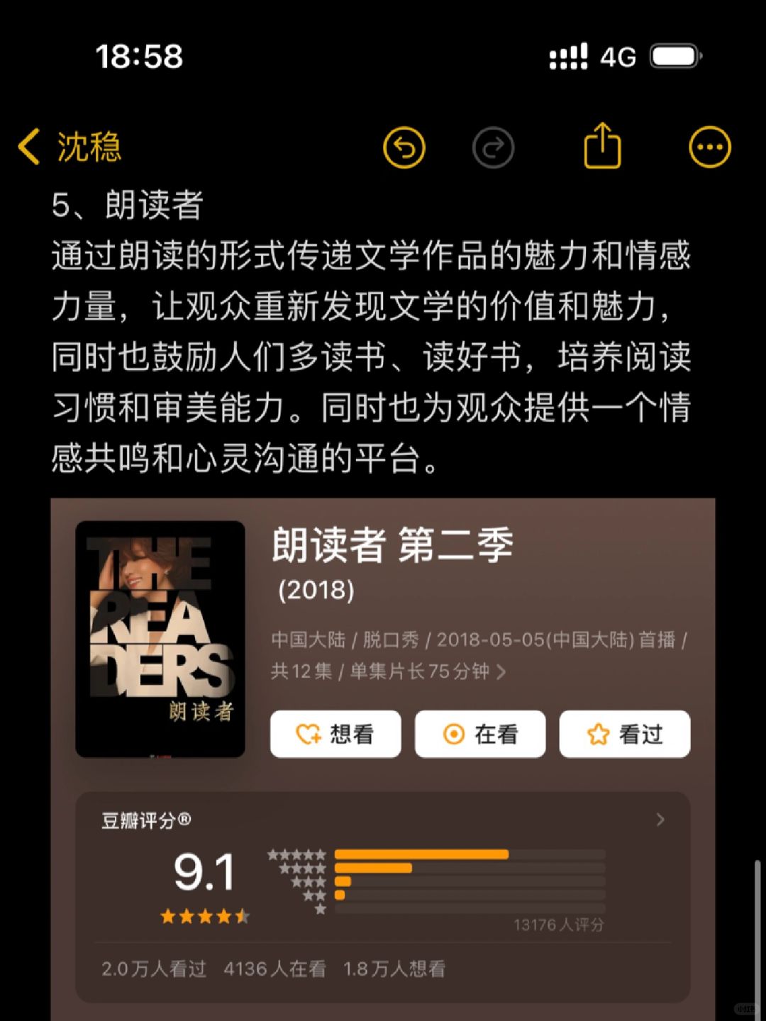 朗读者"太棒了!值得一看再看,每一期都有新收获!一定要看!