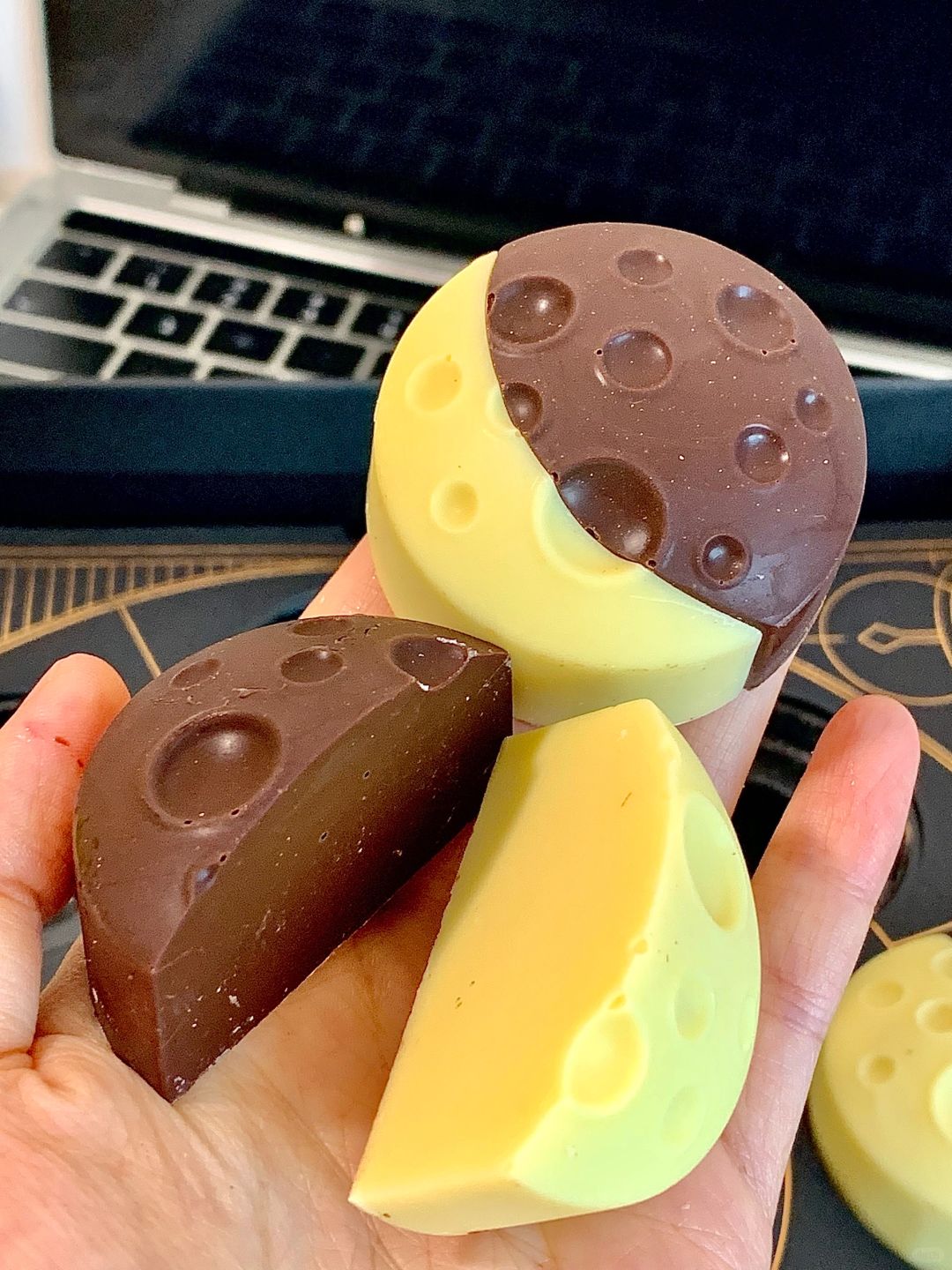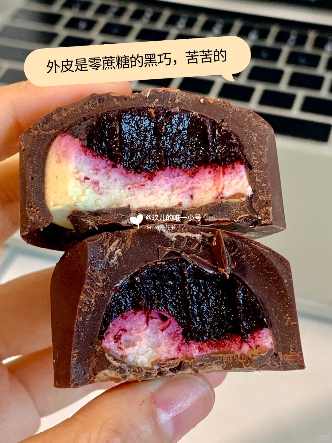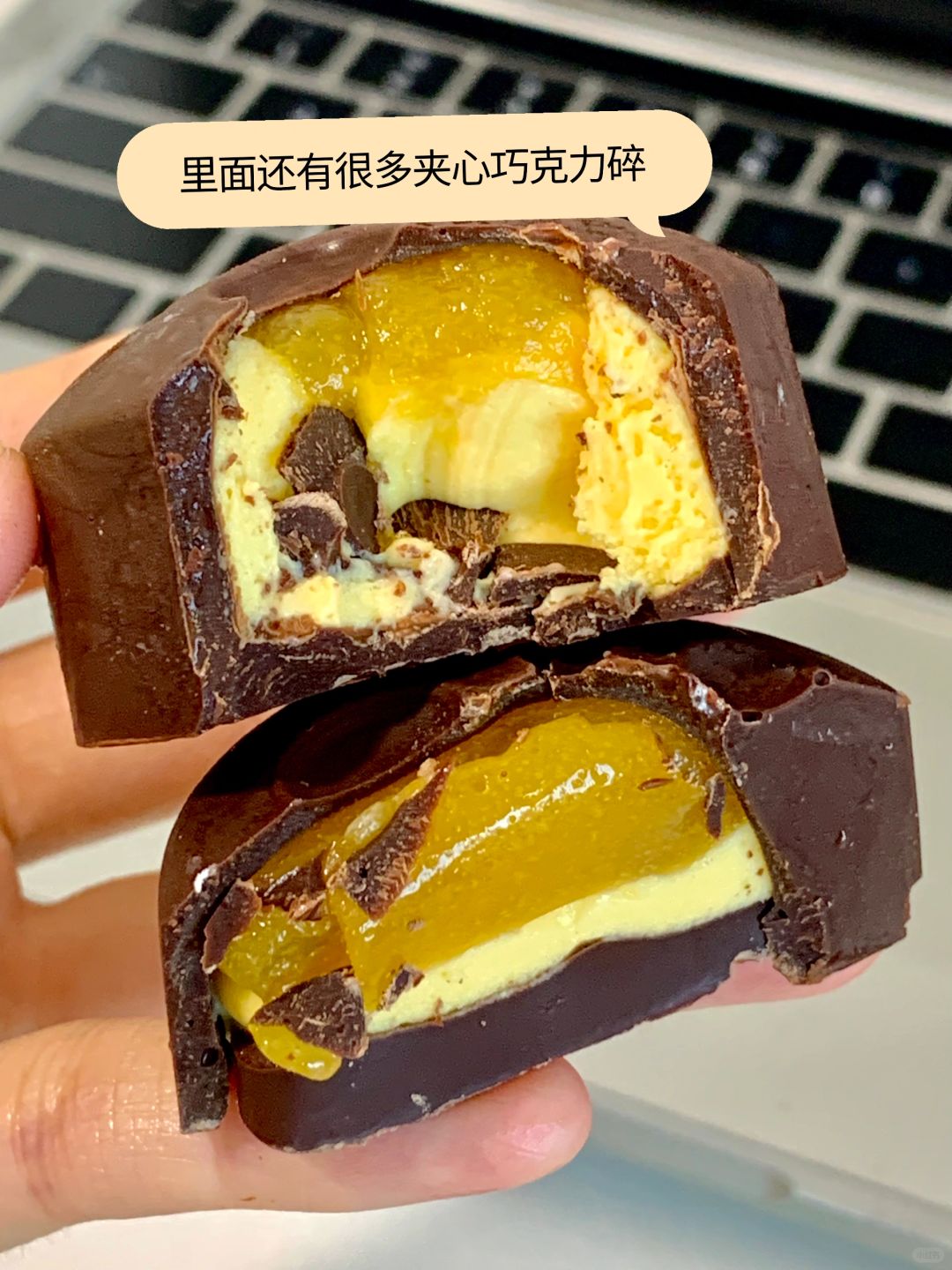 家人们看我发现了什么! 居然是月相巧克力冰淇淋月饼!! 一共有四种口味 ✨芒果百香果 ✨蓝莓海盐芝士 ✨抹茶卡曼橘 ✨蓝莓果酱 一口下去像在吃爆浆冰淇淋! 而且是仿生月球表面纹理👉🏻代表月相六变👉🏻不仅好吃还有寓意 划重点‼️巧克力部分用的是0蔗糖巧克力。 减少3倍热量🔥🔥 不爱吃传统甜腻老式月饼的一定要试试这个!!