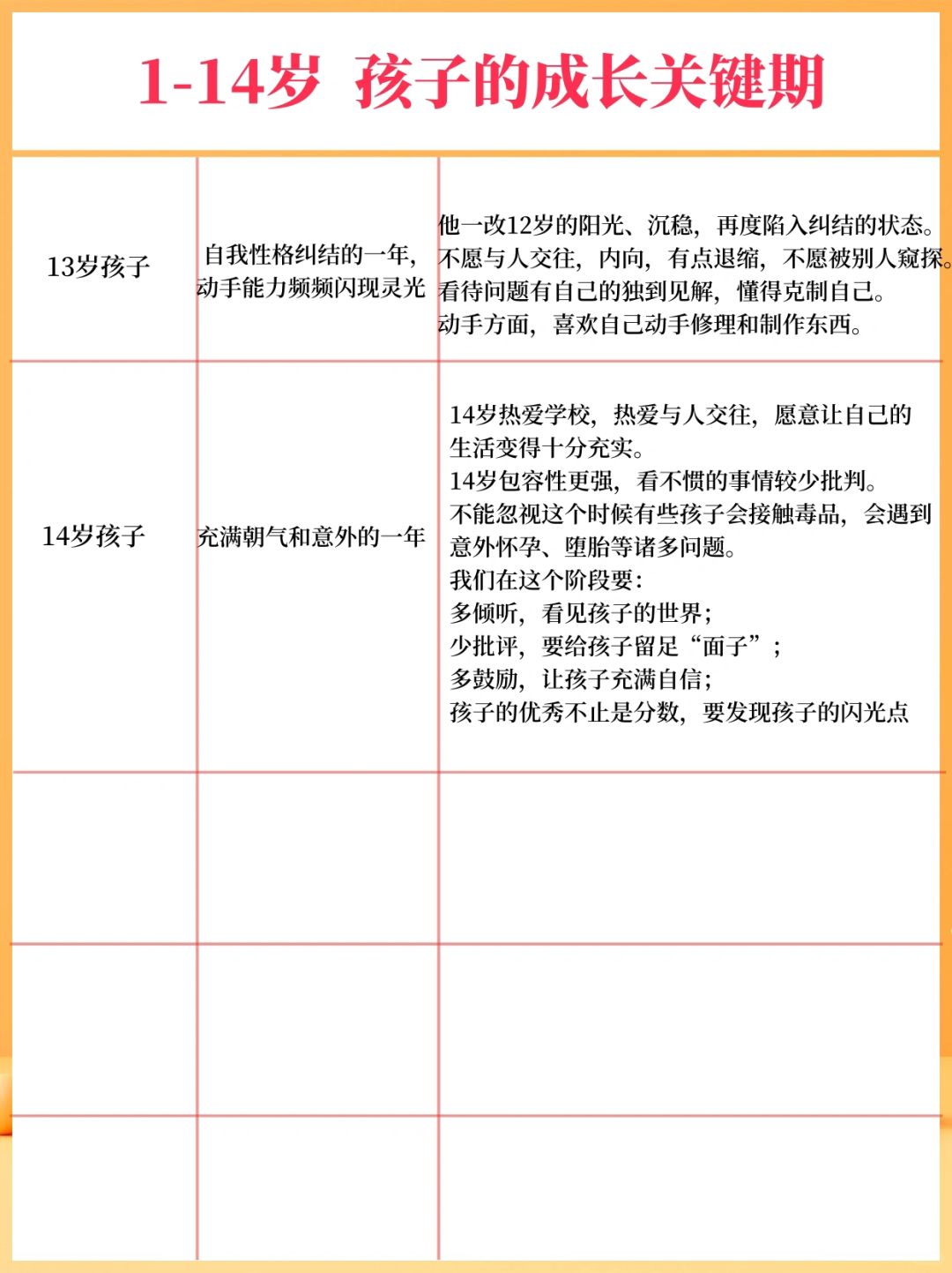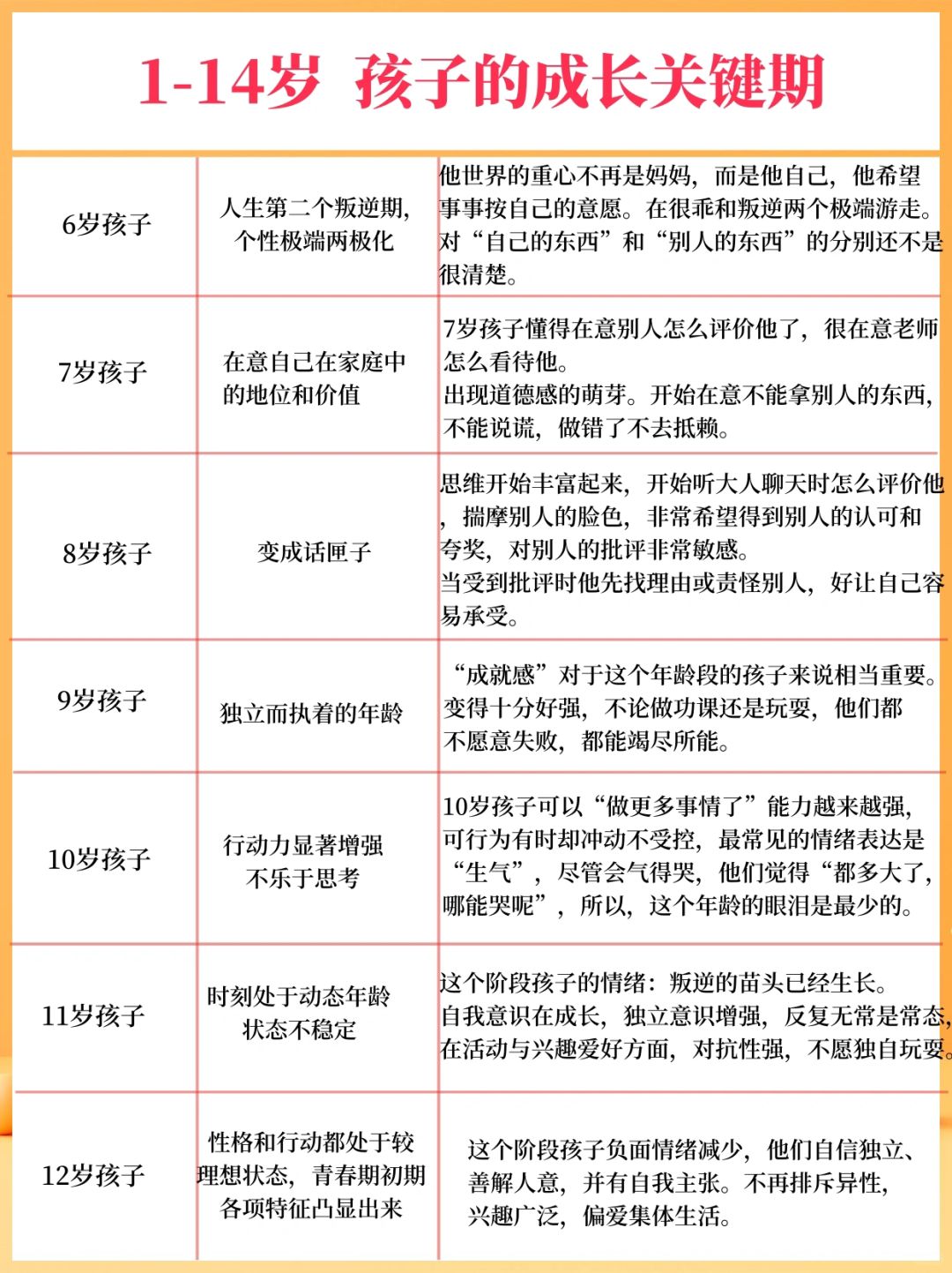 想要教育好孩子,成为合格的爸爸妈妈,首先要了解孩子成长期间的想法! 耶鲁大学格赛尔儿童发展研究所跟踪孩子们40多年,研究儿童行为的变化与发展。 知彼知己,了解这些,有助于咱们做爸妈的更好的和孩子沟通,让家庭关系更加和谐融洽!