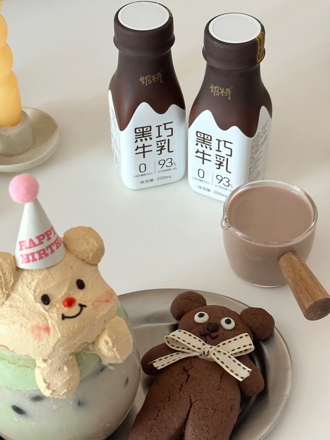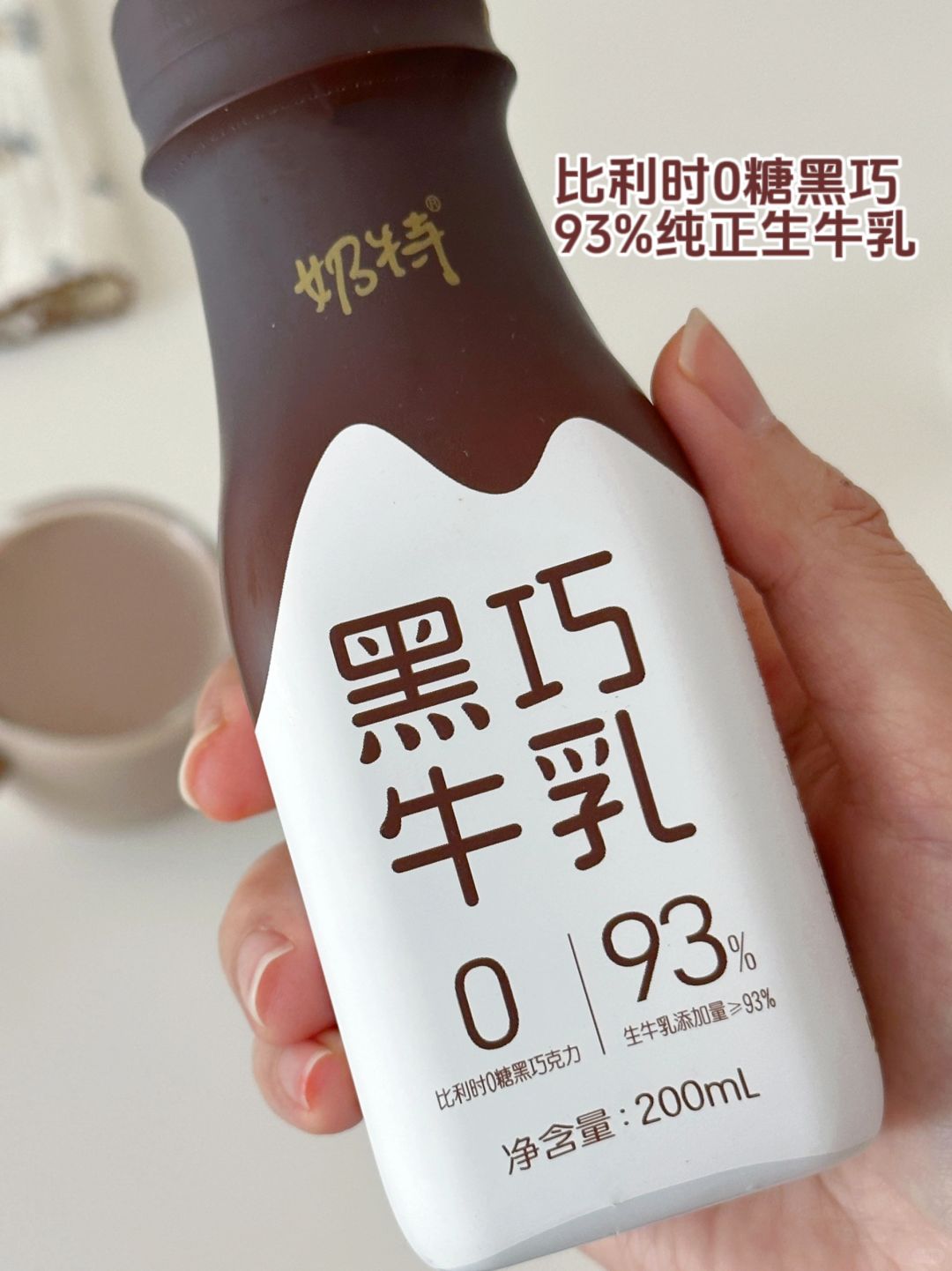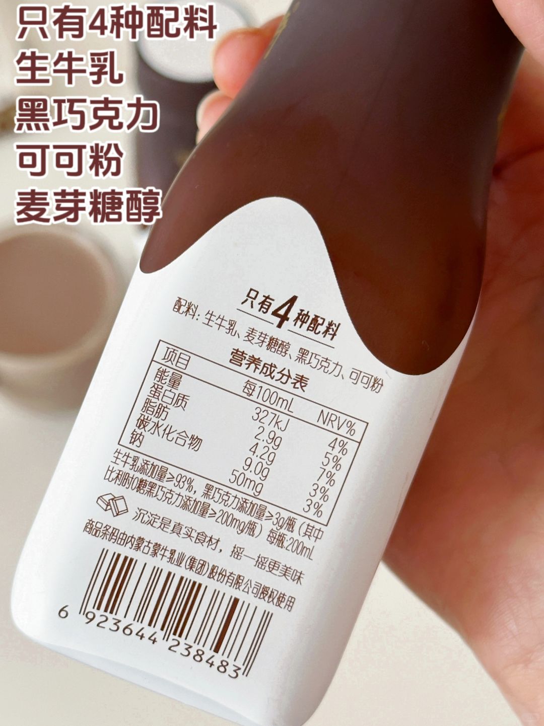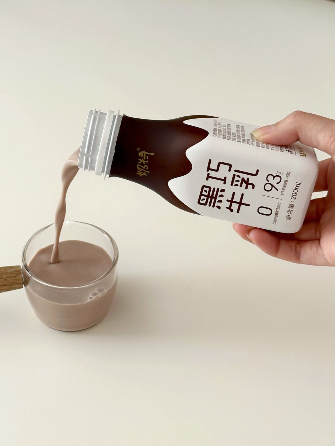 ③加入冰块,倒入近期超爱的奶特黑巧牛乳。比利时0糖黑巧和93%纯正生牛乳的搭配对控糖期的宝贝们十分友好呀~配料表简单,只有生牛乳,黑巧克力,可可粉和麦芽糖醇。喝起来和记忆中甜腻腻的味道完全不一样,浓郁的黑巧风味,入口醇滑,奶香四溢,又不失黑巧的香气。真的很好喝了!!
