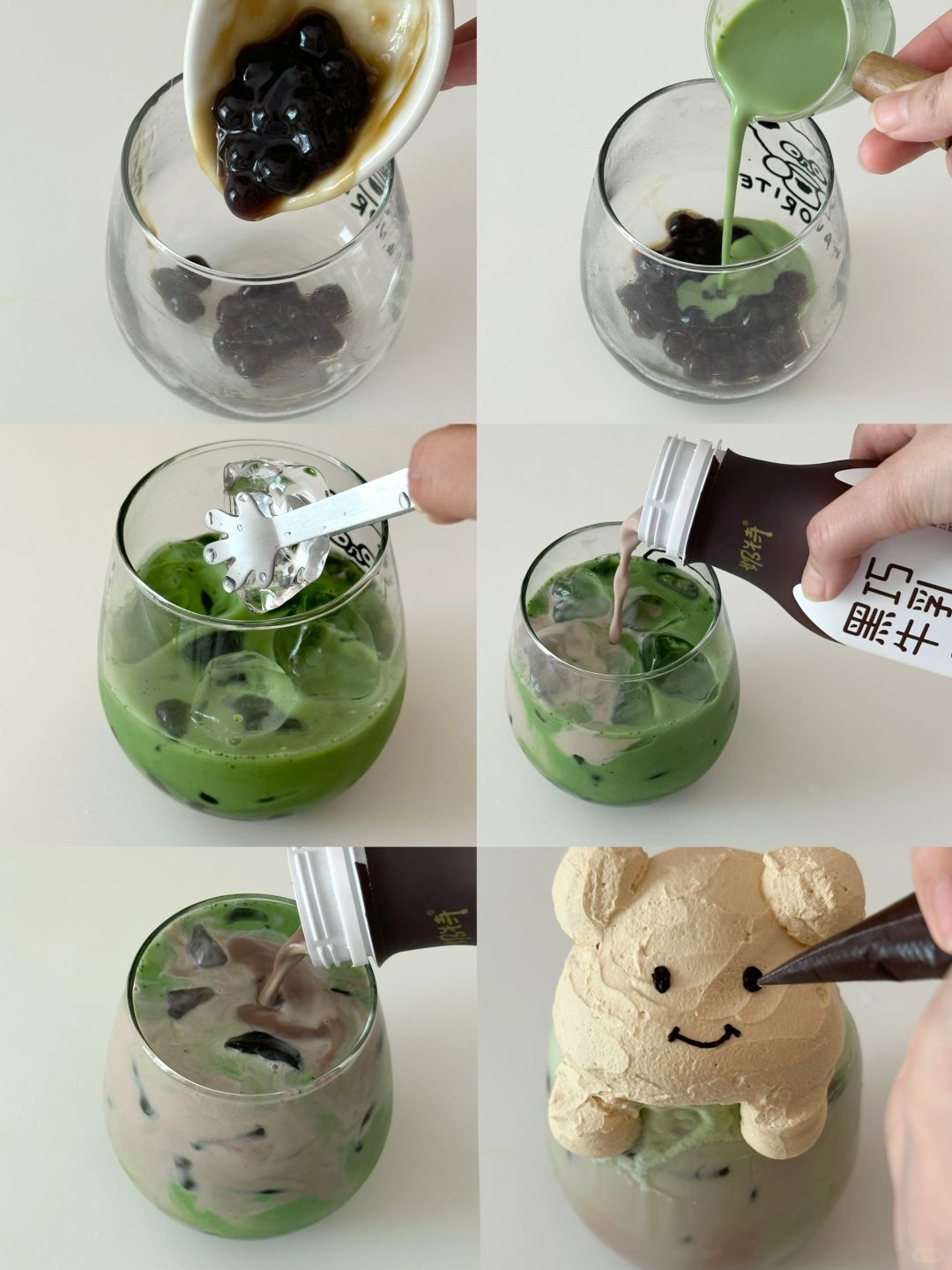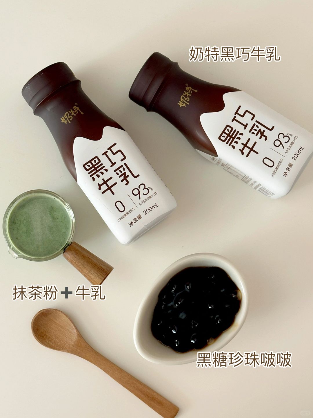 奶特黑巧牛乳,黑糖珍珠啵啵,抹茶粉,牛乳,稀奶油