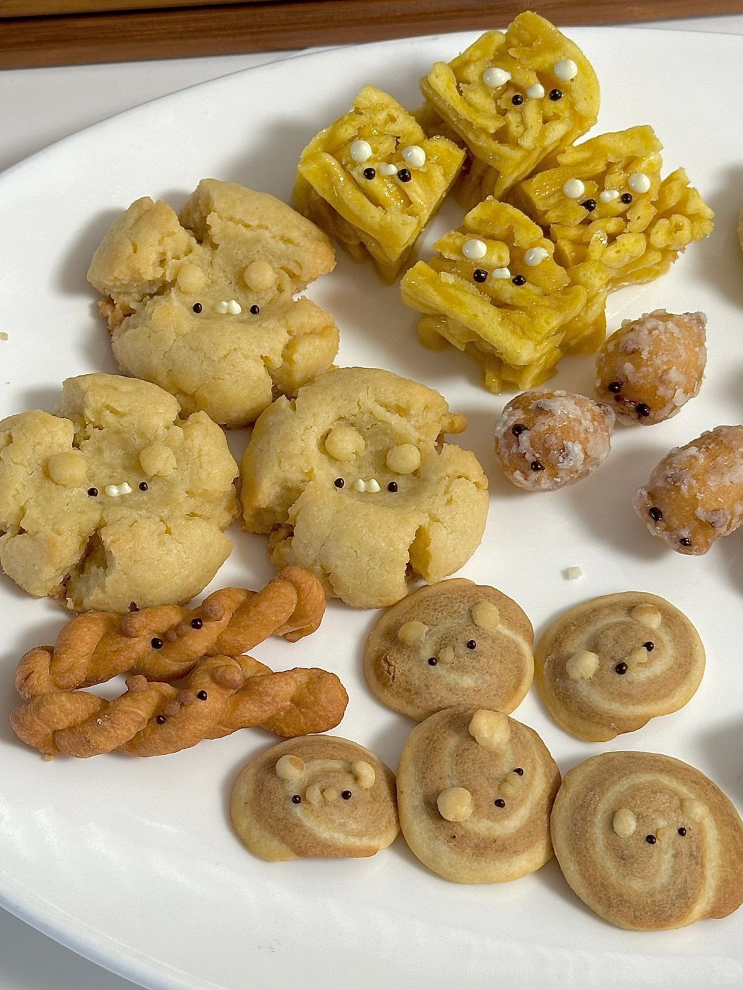 面团:50g花生油、27g蛋、100g低筋面粉、1撮盐、10g糖、1g泡打粉