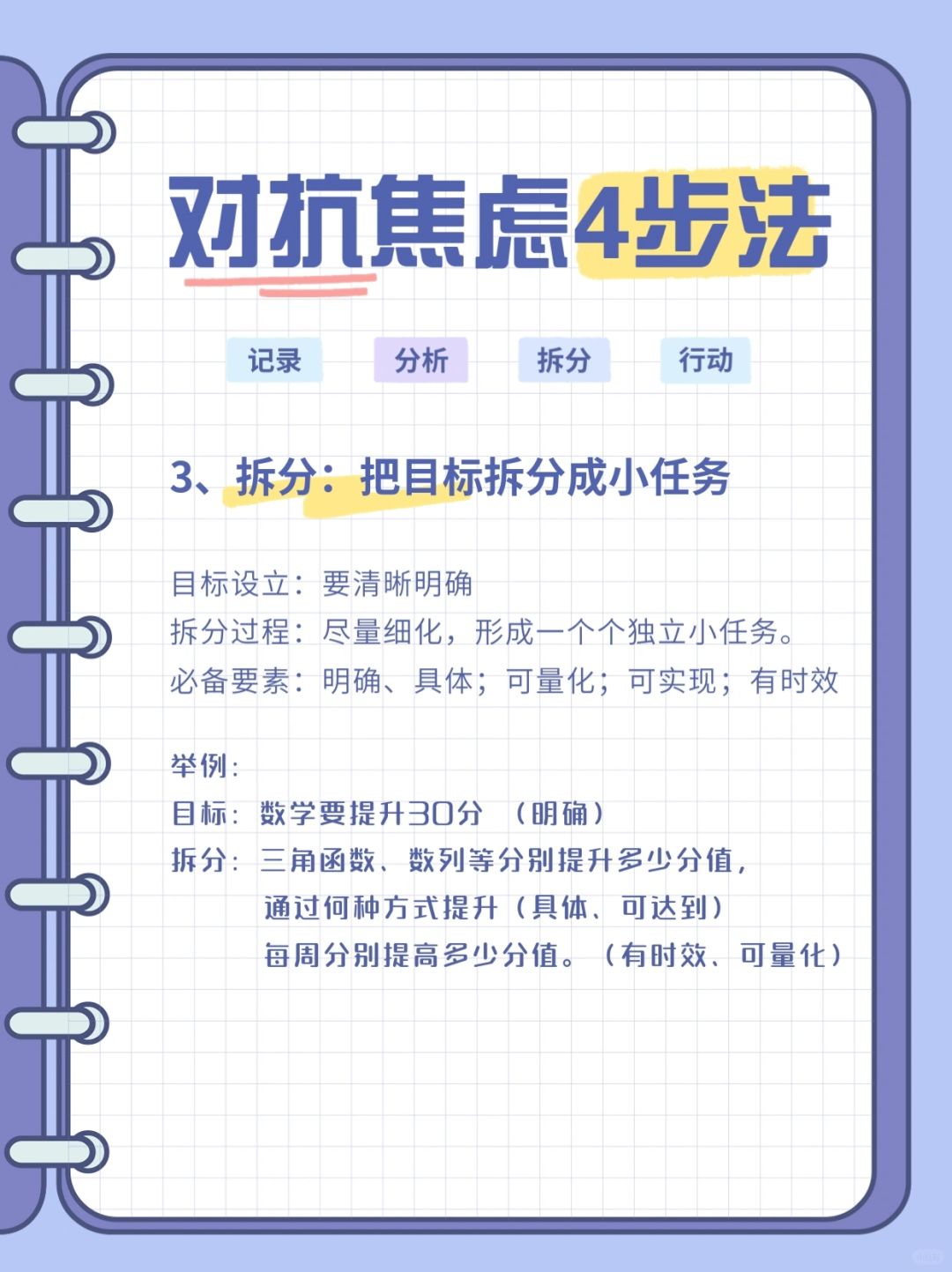 3️⃣拆分:把目标拆分成小任务。