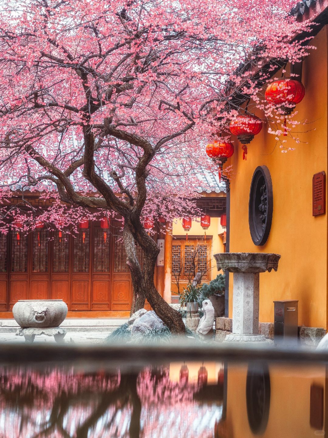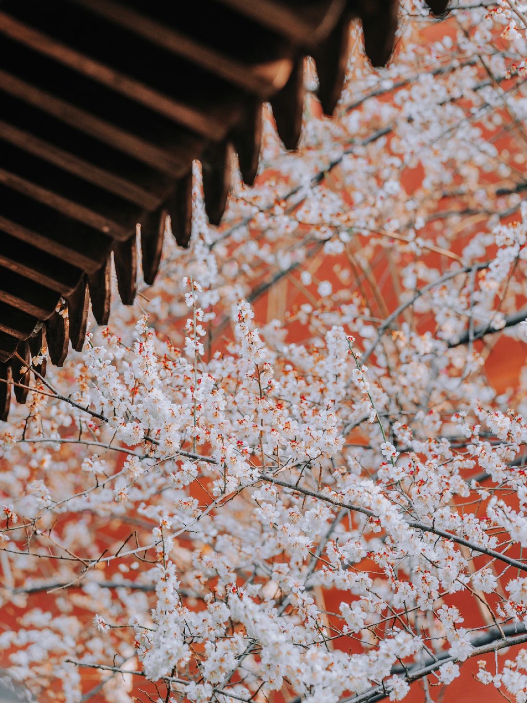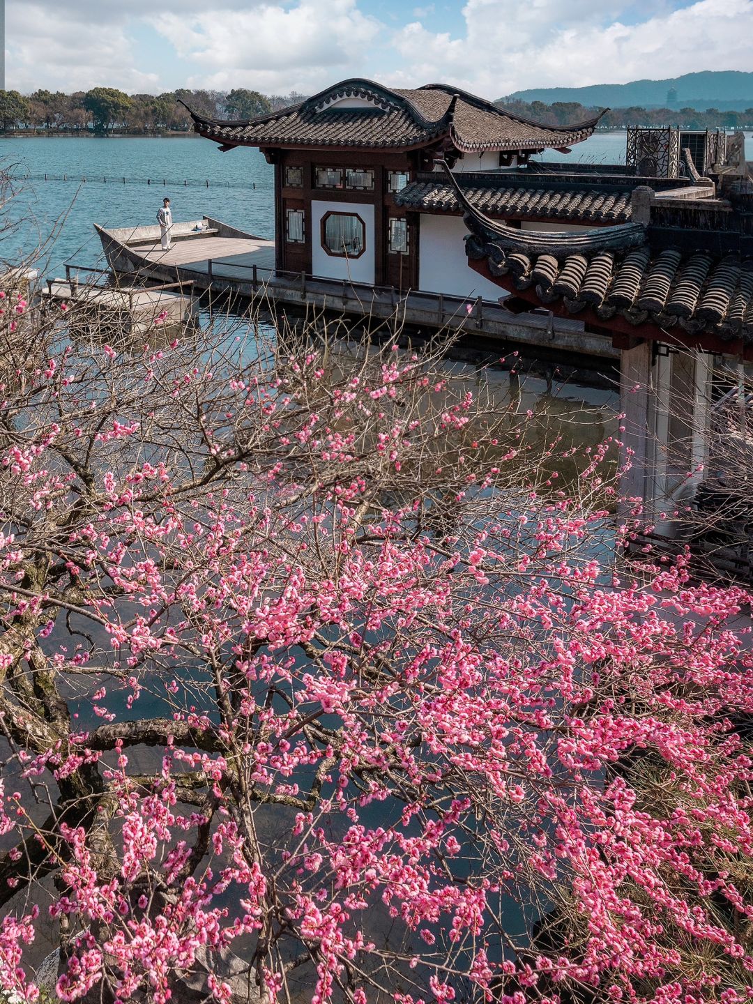 梅花就该临水而盛,配上飞檐江南氛围拉满