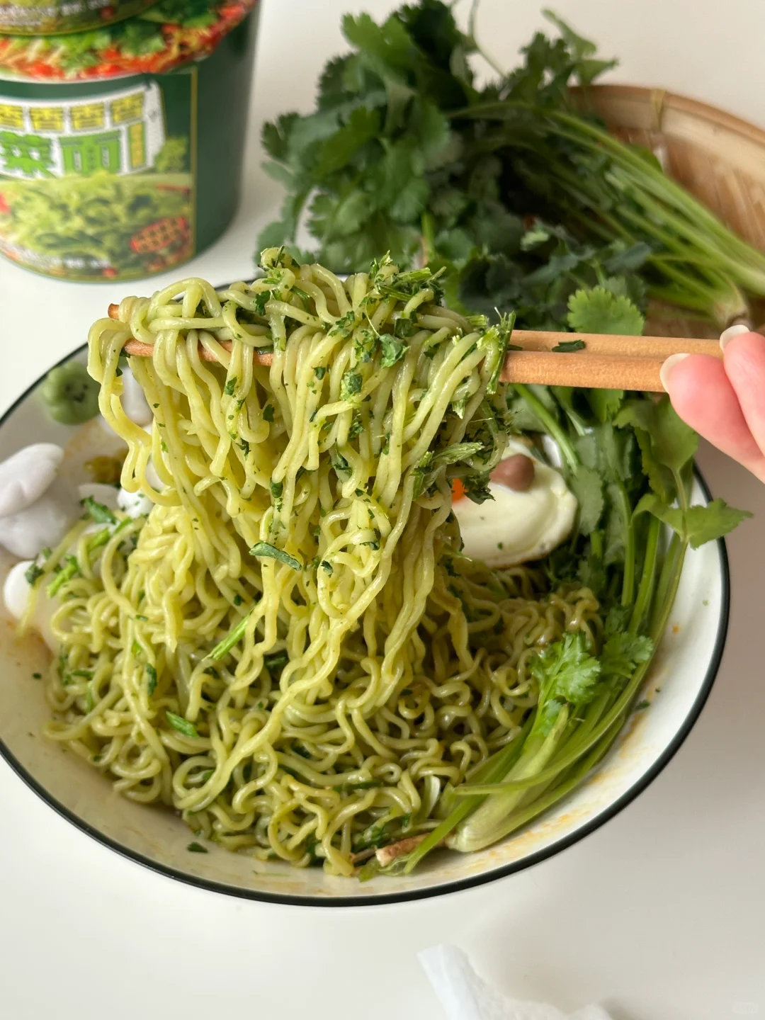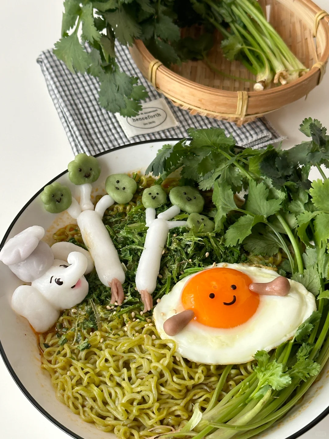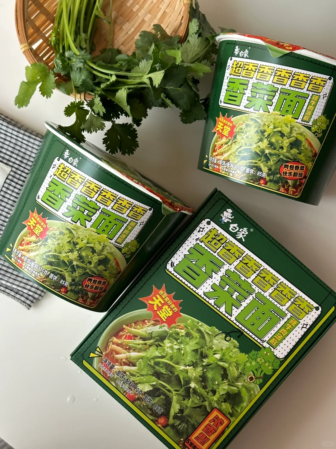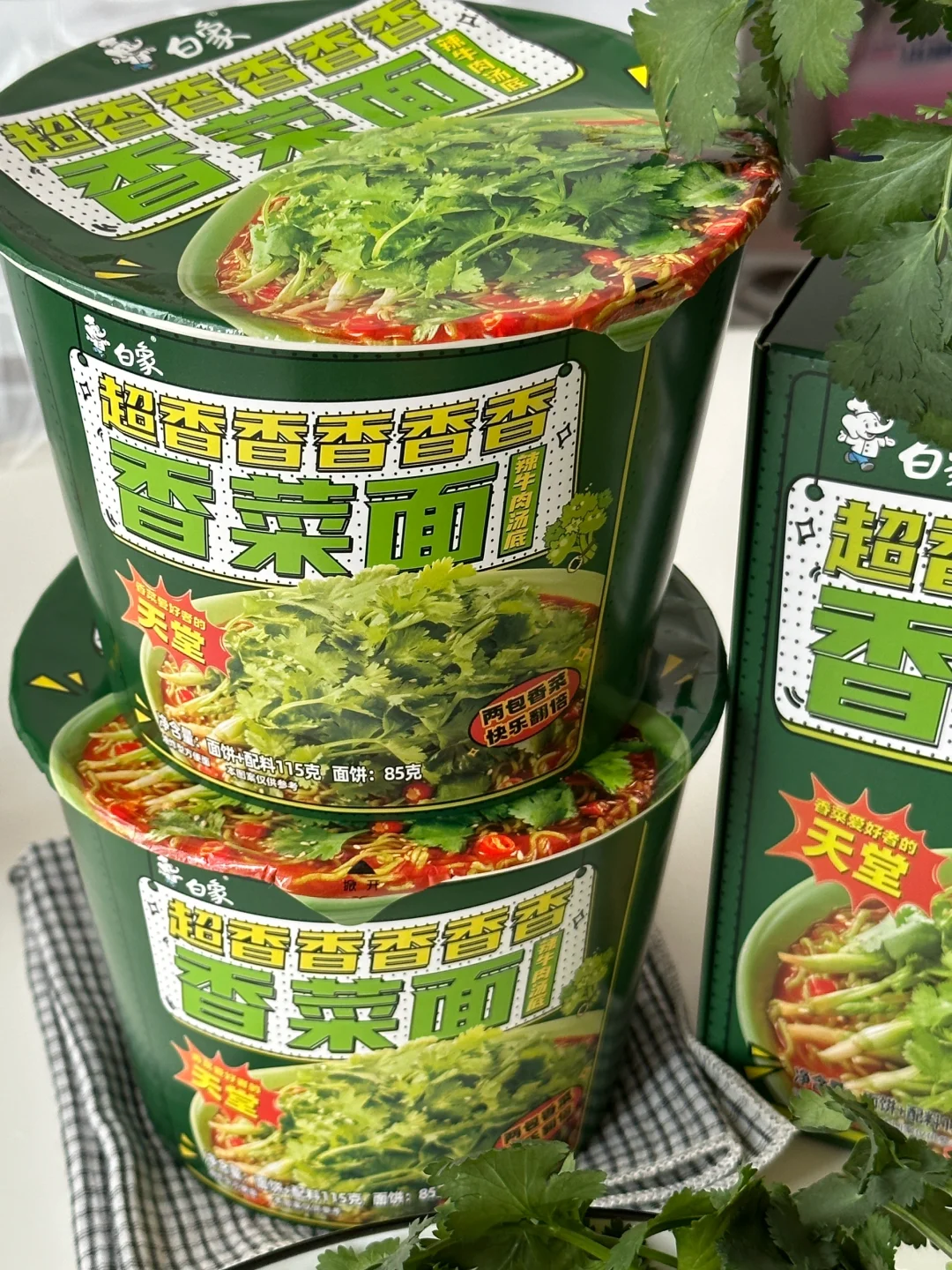 香菜🥬脑袋总有那么几天想要豪爽的享用香菜宴,今日就做一份可可爱爱的香菜面套餐吧![害羞R][害羞R] 所需材料: 白象香菜面,溏心煎蛋,冰皮预拌粉50g,沸水50g,新鲜香菜 制作步骤: ①冰皮粉中加入沸水,搅拌均匀揉成团,用抹茶粉,可可粉,仙人掌果粉调色,捏出可爱的jellycat香菜形象,小白象,以及jellycat煎蛋的小手。 ②把面饼放入600ml沸水中,2分钟时搅拌一下,使其松散并均匀受热 ③煮至三分钟加入汤包,继续煮至4分钟关火 ④呈出到碗中,铺上满满的香菜碎 ⑤点缀上可爱的jellycat香菜煎蛋以及小白象。接下来请仙女王子们尽情享用!! 💚香门永存!💚本香菜星人已经完全离不开白象香香香香香香菜面了~任何时候,泡碗这绿色的面条,香气四溢,劲道入味儿。每根面条上都挂满了香菜,搭配微辣的牛肉汤底,简直神清气爽,一口入魂!! 快来一起实现香菜自由吧~