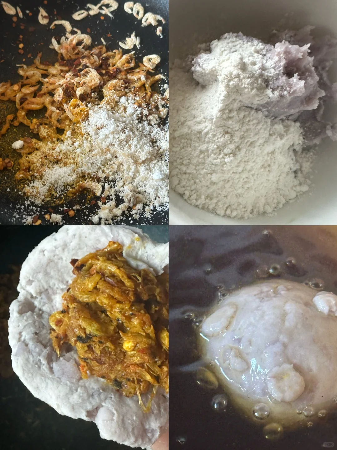 馅:虾皮、椰蓉、咖喱粉、辣椒面、水