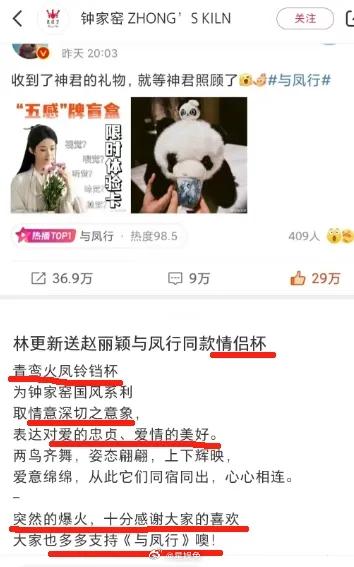 林更新送给赵丽颖的杯子,价值2800元,售罄了