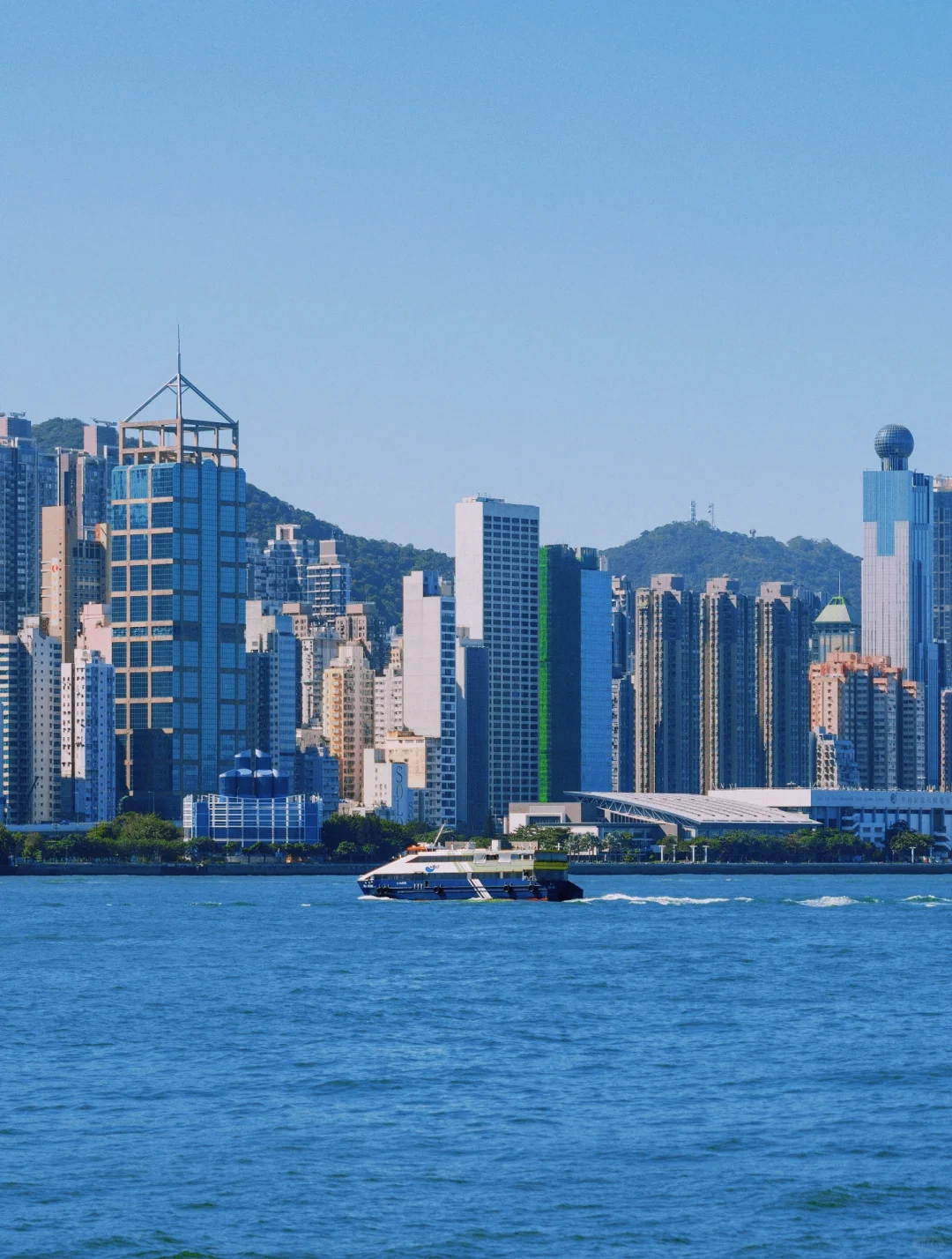 乘坐途中,可以欣赏到美丽的维港风景,感受海风的吹拂
