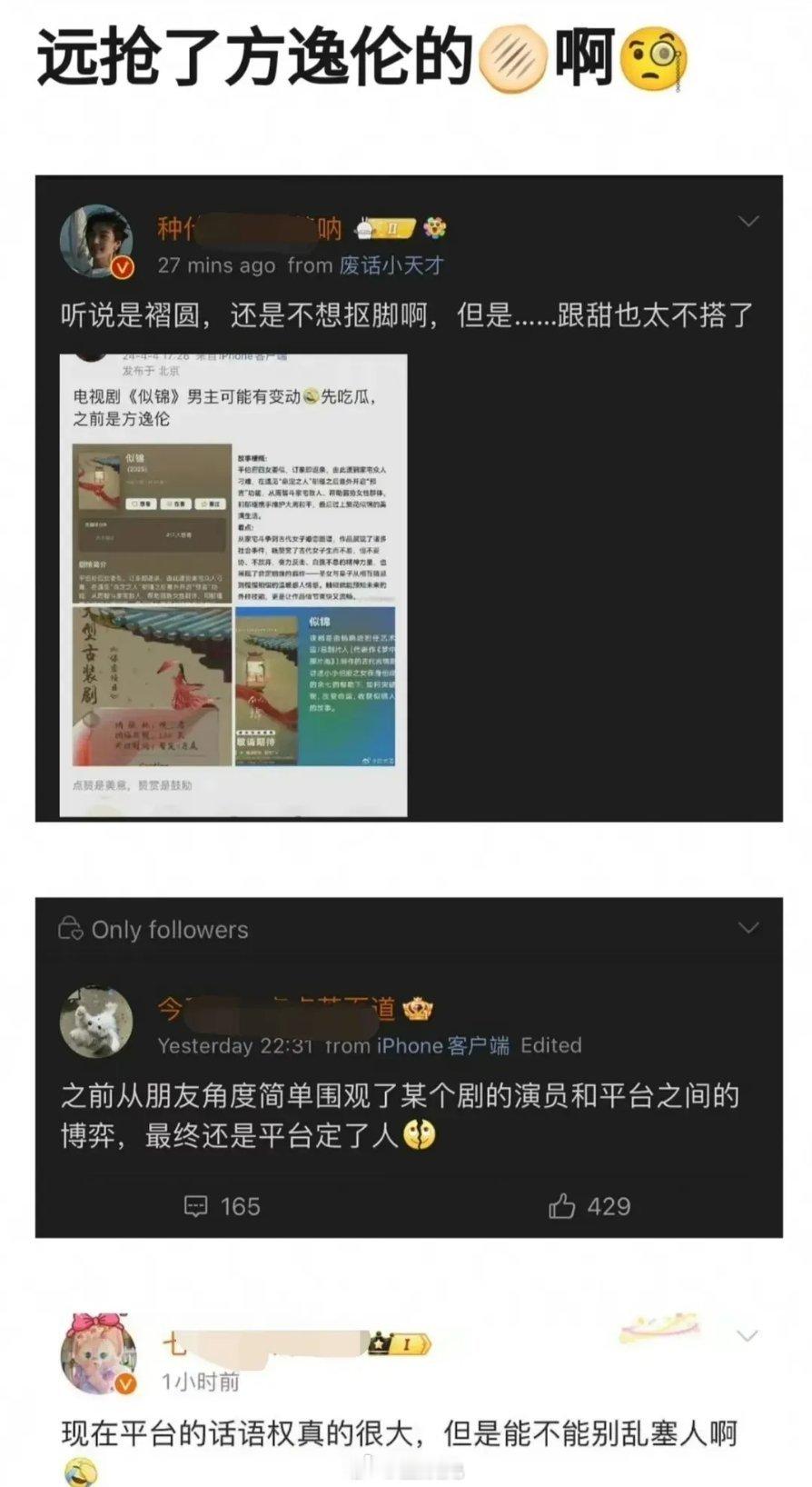 🍉电视剧《似锦》男主,从方逸伦换成了陈哲远……
