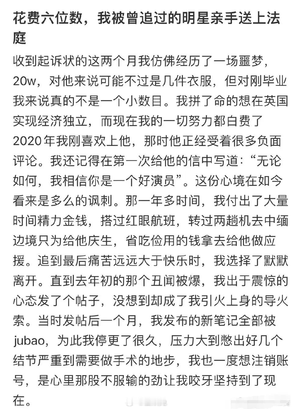 有网友说自己曾是陈飞宇的粉丝,最终却被陈飞宇告上法庭,还被陈飞宇索赔20万…