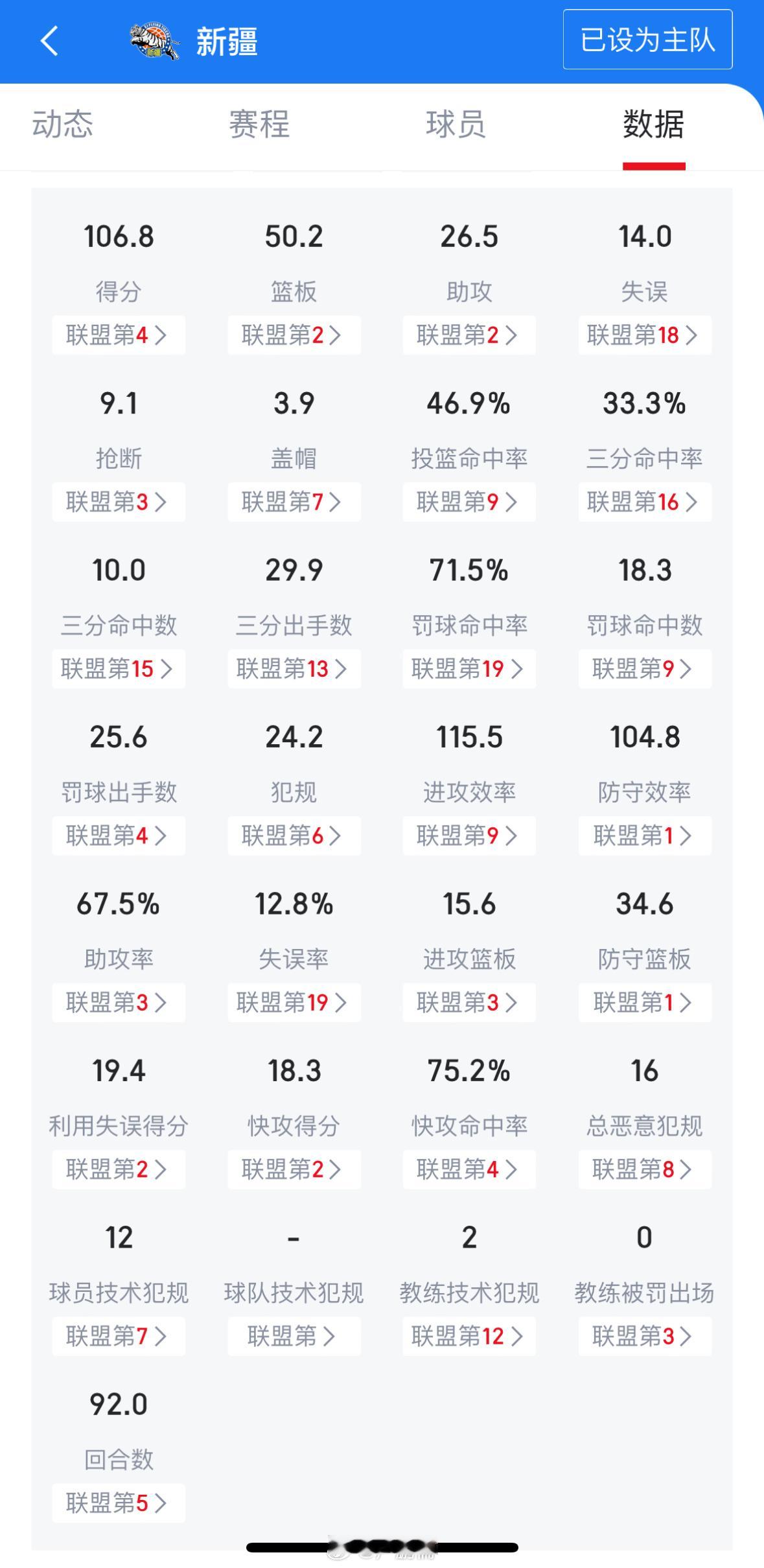 防守效率、防守篮板联盟第一,总篮板、助攻数、快攻得分联盟第二,其他多项数据也都排在联盟前列。看似这赛季的新疆队要大丰收了,许多球迷也在憧憬着那五个字——新疆总冠军,但我在此刻想给大家破点凉水降降温。