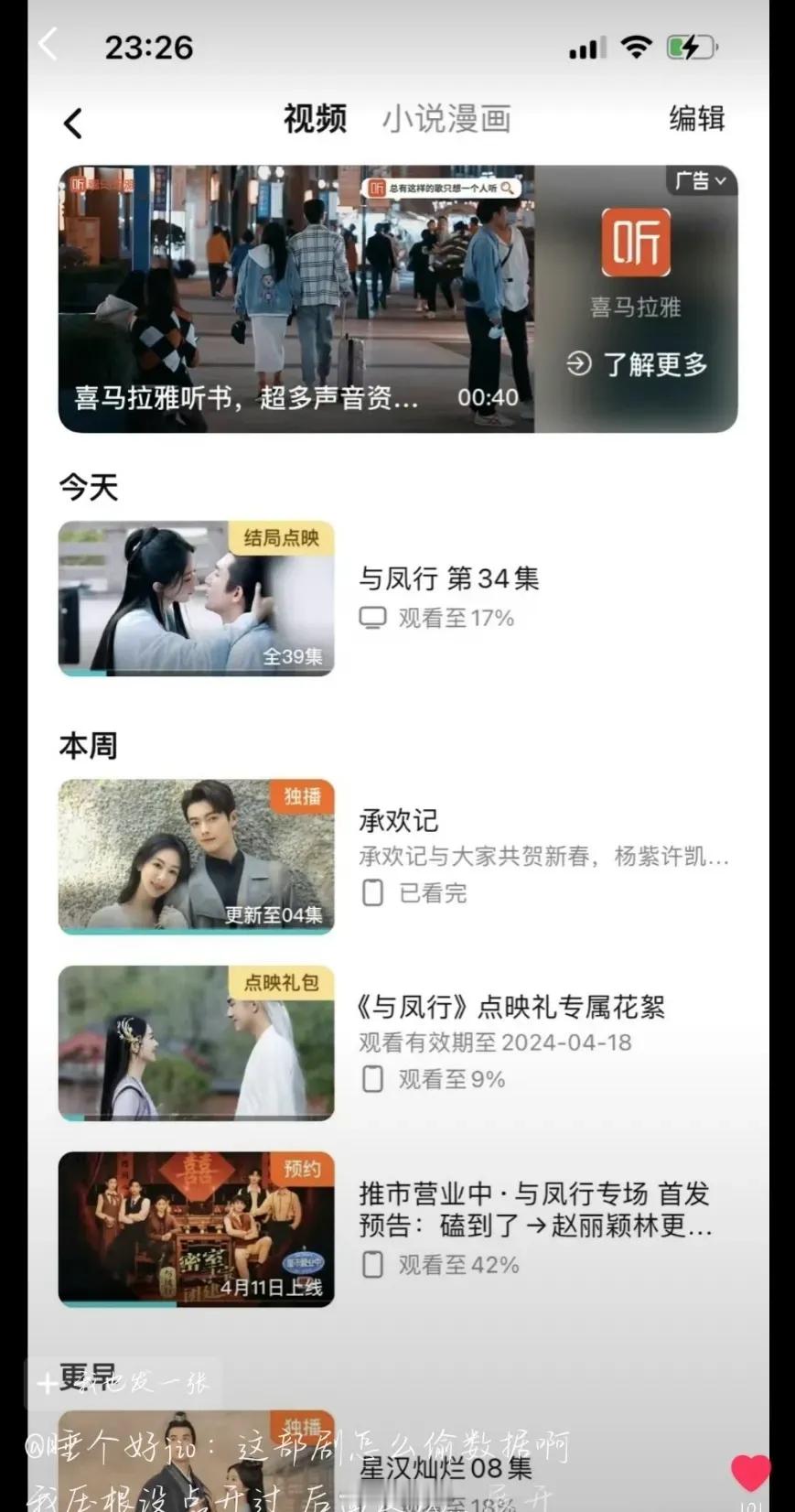 有网友说杨紫的剧在腾讯偷数据,与凤行播完了自动跳转到那个她的剧了,有人又遇到过这
