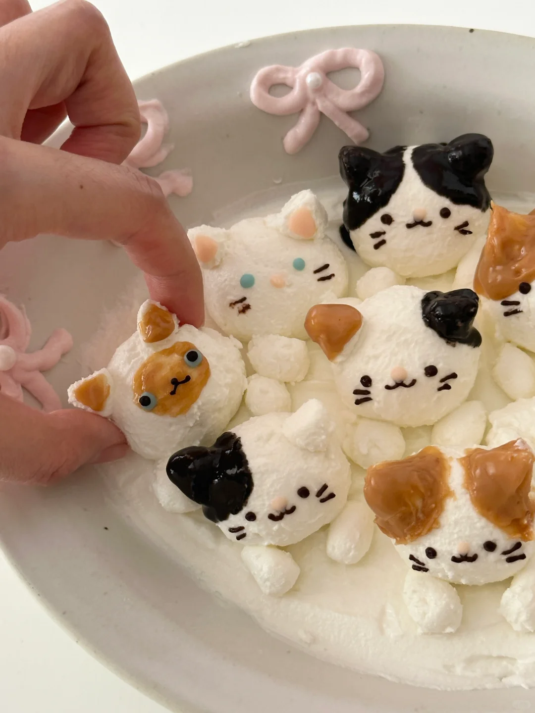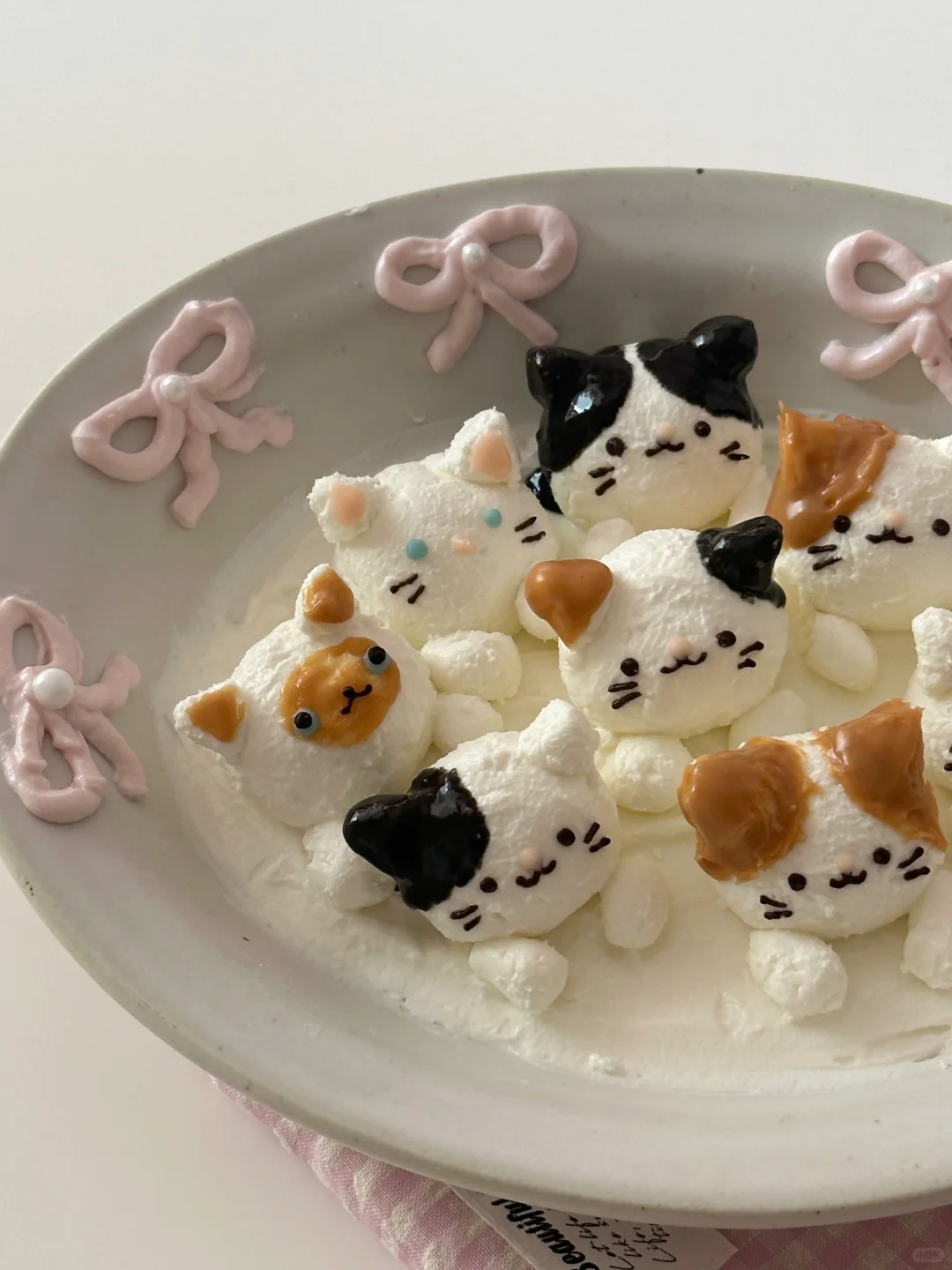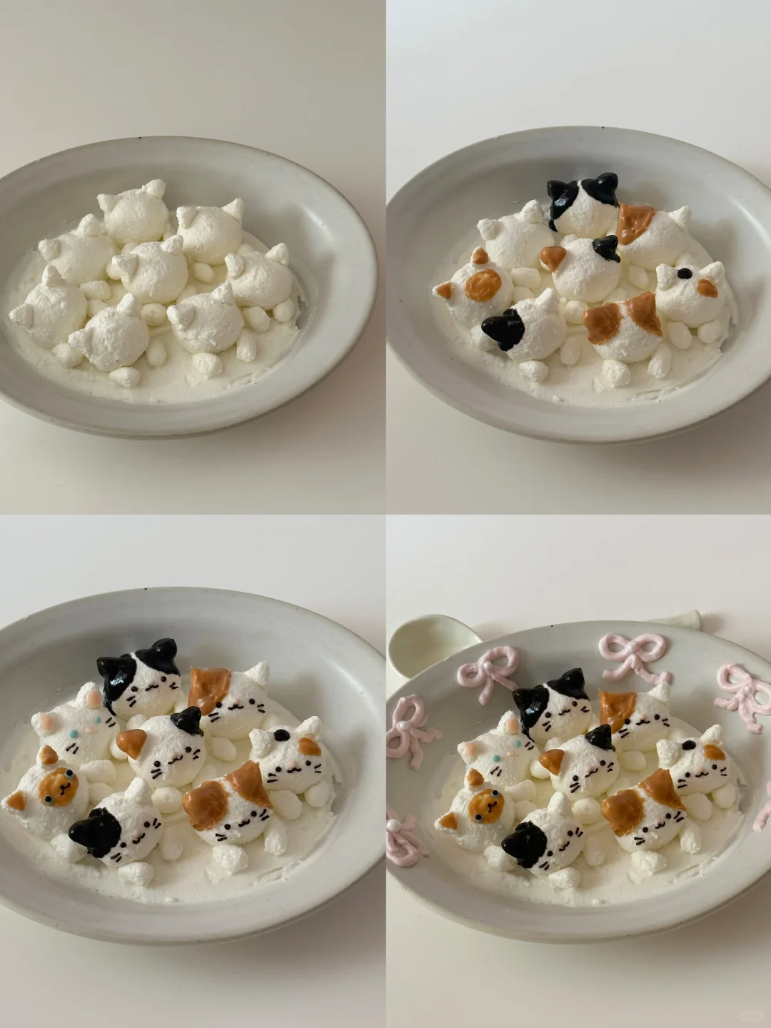 我又来捏猫啦,这次当然不能错过春日减肥必备的干噎希腊酸奶碗,绵密的乳酪状酸奶,像冰淇淋一样奶香浓郁呀~ 制作步骤: ①希腊式酸奶装在纱布中用酸奶过滤器或者直接挂起来过滤乳清一晚 ②碗中放入麦片,过滤好的酸奶平铺碗底,剩余的捏成一碗小猫造型 ③用给芝麻酱,花生酱,彩色巧克力笔画出小猫花纹五官 ④少许酸奶混合仙人掌果粉调成粉色,装入裱花袋在碗边画出蝴蝶结造型 每一口都可以吃掉一个猫猫头😎 快来交作业吧~[害羞R][害羞R]