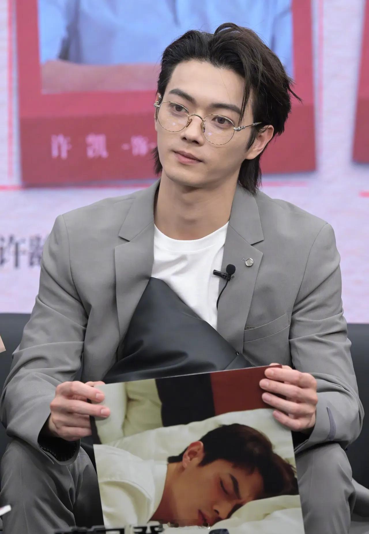 许凯金边眼镜长发造型线下活动生图,憔悴了好多,眼睛都没神了[傻眼]