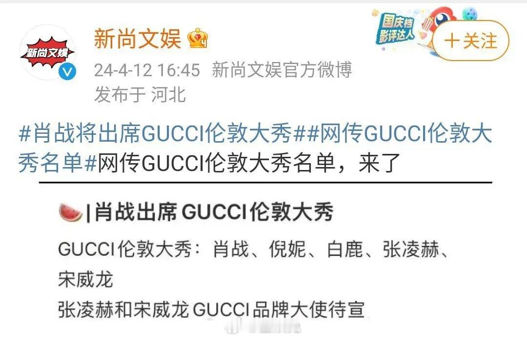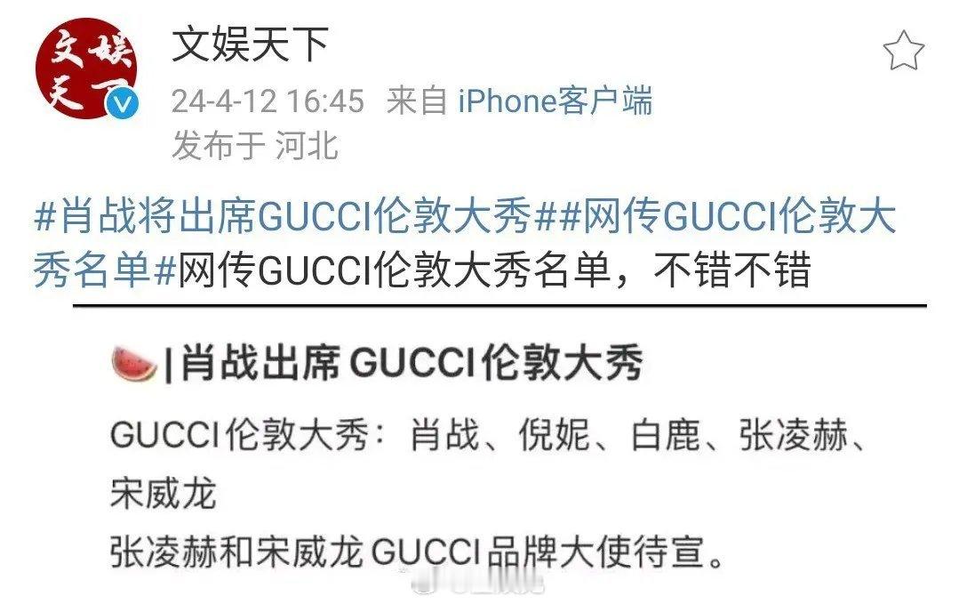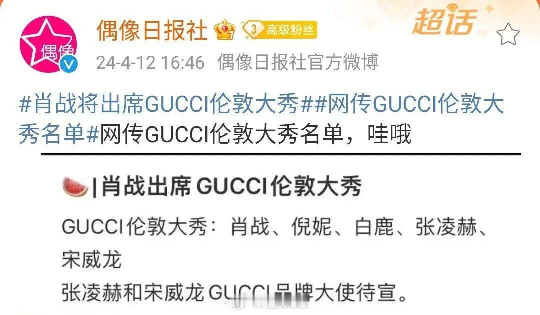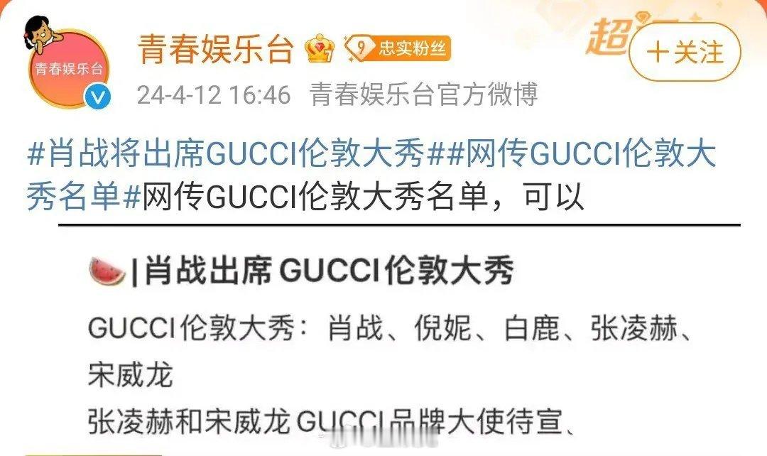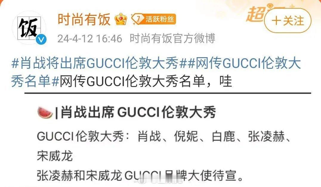网传GUCCI伦敦大秀名单里有肖战,他会出席吗?
