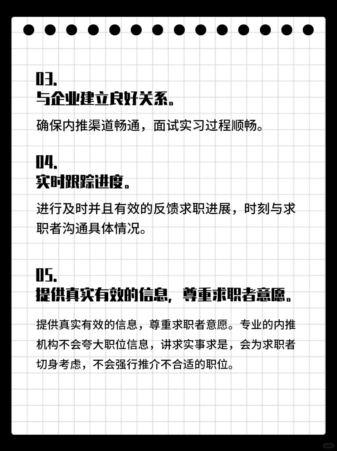 👉🏻5.提供真实有效的信息,尊重求职者意愿。