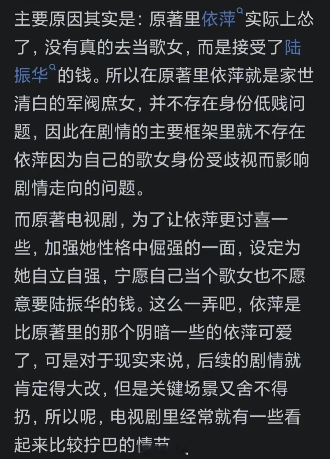 用户10xxx37 15 2024-04-20 08:32 曼璐一家子就是吸血鬼,大女儿卖,儿子女儿都心高气傲地读书工作,家里的老娘奶奶还一副大户人家的样子,啥家庭不知道啊还请保姆,最后还一个个一脸恨铁不成钢地怪大女儿丢了他们家的人!其实什么半生缘,她妹妹爱而不得相比她姐能有多可怜,曼璐最可恨的一点至多也就是把她妹妹推给了祝鸿才,除此之外,我觉得曼璐一点儿错都没有