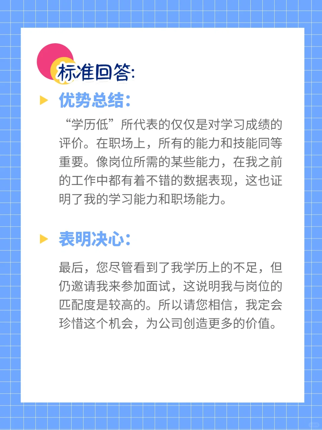 在面试进程中,若 HR 询问“你的学历有点低呀”,应如何给出完美作答呢?🫢