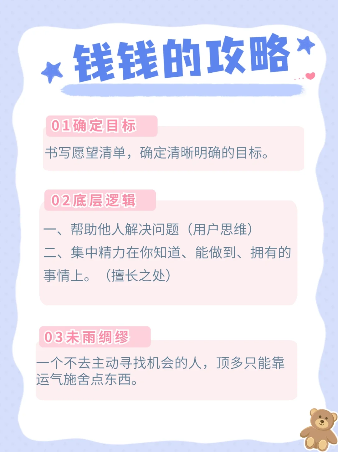 这一系列的操作,就如同「小狗钱钱」中的梦想清单,先写下心中愿望,确定好清晰明确的目标,然后再计划实行。
