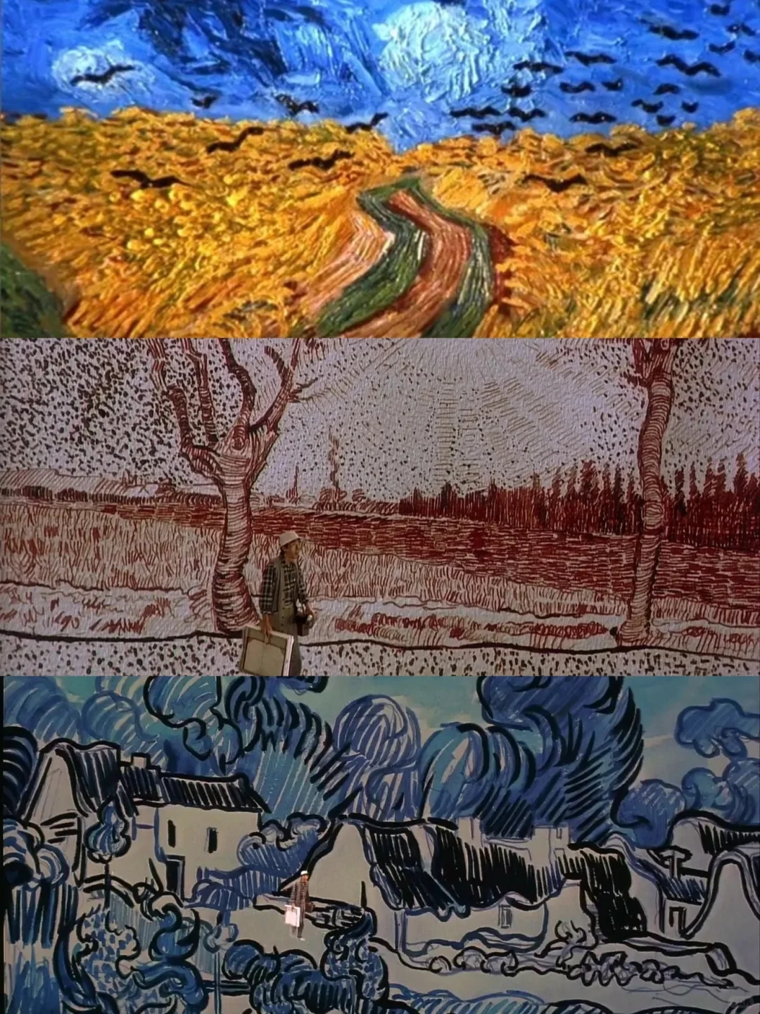 一种神秘的仪式美感 🎦影片:《梦》 🌱类型:剧情/奇幻 💧时长:120min · 黑泽明对梦的勾画,全片共有八个梦境💤 分别是:太阳雨、桃园、风雪、隧道、乌鸦、红色富士山、垂泪的魔鬼和水车之村 我有过很多梦,大概也就是这样的意境 · 这八个梦几乎贯穿了人类生活的所有主题,战争与和平、社会与人生 最喜欢狐狸娶亲,跟梦的感觉太像,梦就是这么光怪陆离,无理取闹,玄玄乎乎啊❗ · 探戈儿就是趟啊趟着走,三步一窜嘛两啊两回头,五步一下腰,六步一招手,然后你再趟啊趟着走,这叫探戈儿 影如其名,狐狸娶亲、桃仙摆阵、遁入浓郁油画、驻足世外水乡,幽秘绚烂,瑰丽无比。梵高段落结尾还原《麦田的乌鸦》 在不同的梦境里有着不同的场景,配合不同的色彩,把人类所面对的所有主题一一呈现