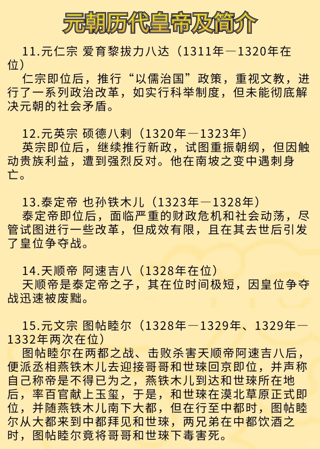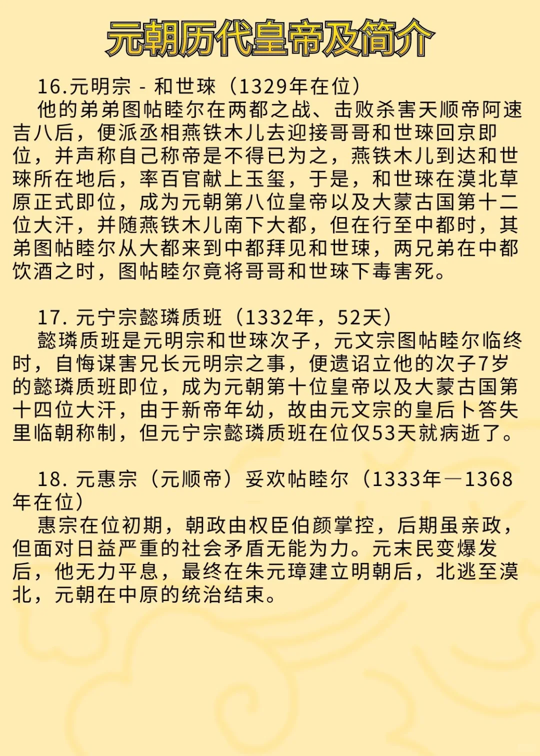 历史那些事儿 中国历史 历史知识 历史 趣味历史知识 历史笔记 元朝 元朝历史 元朝皇帝 元朝十五帝