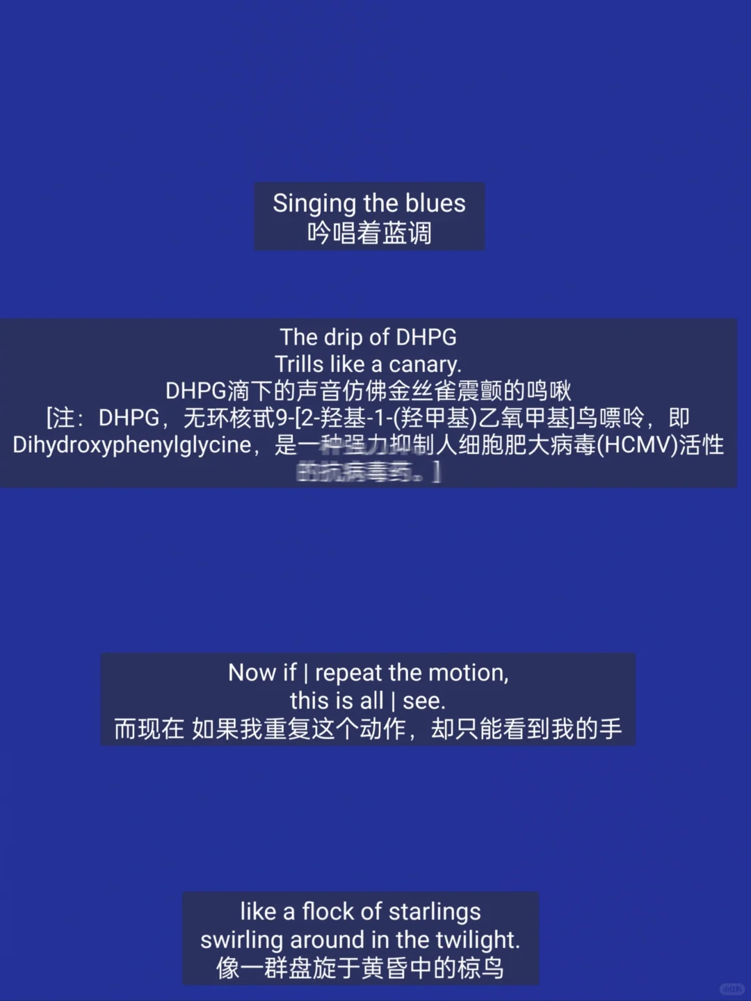 无画面无情节,也没有对白没有人物,除了诗性的背景音乐和贾曼宁静安详的自白