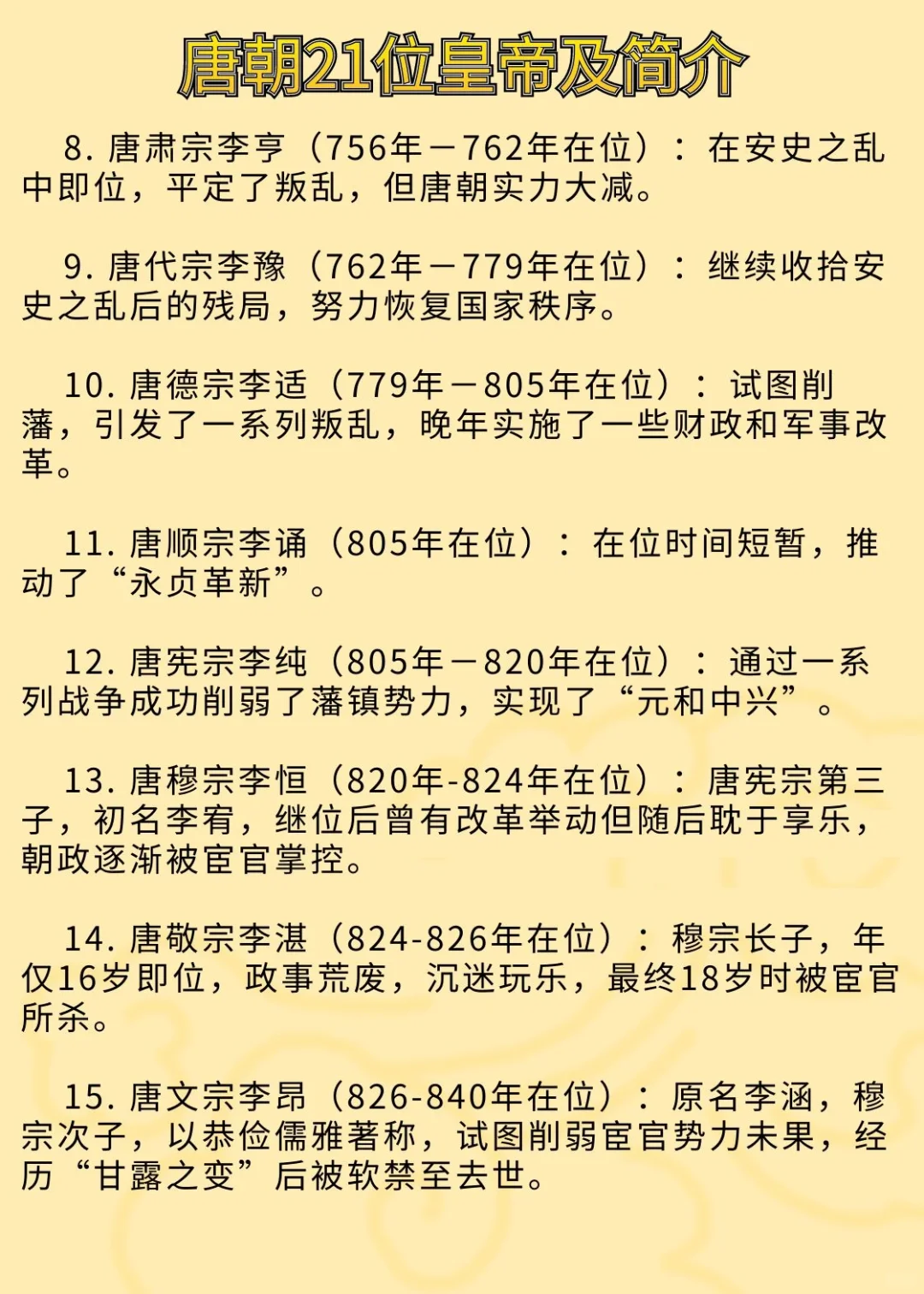中国历史 皇帝 历史 历史那些事儿 唐朝 唐朝历史 唐朝皇帝 唐朝皇帝顺序 唐朝21位皇帝 唐朝历史 唐代历史 唐代皇帝 唐代皇帝有多少 每日分享