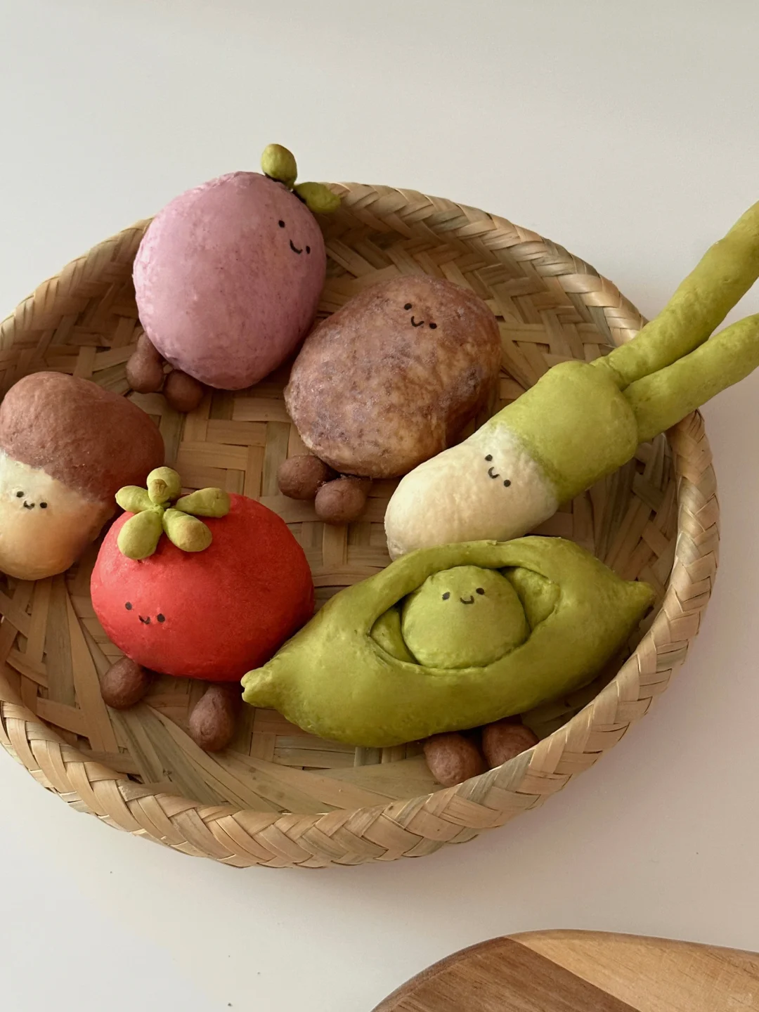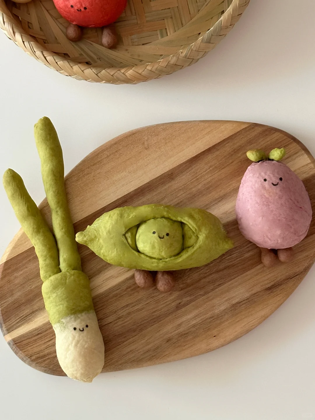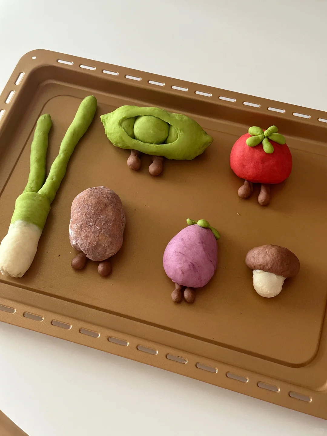 ⑤每个蔬菜大概50g左右,制作出可爱的蔬菜形象