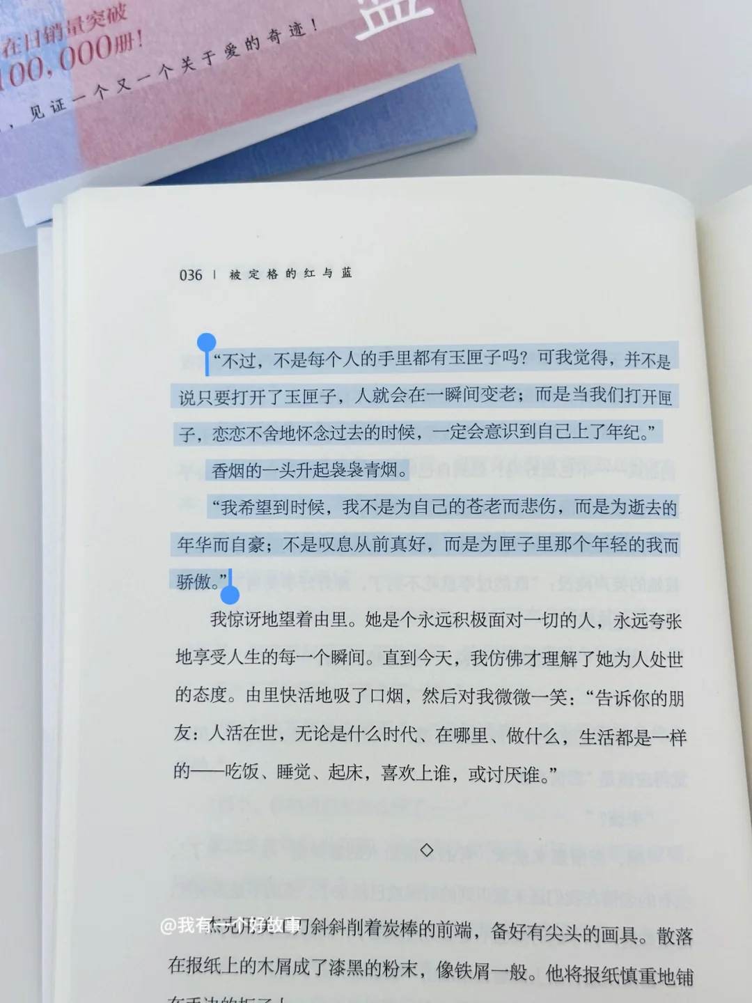 🔹“不是每个的手里都有玉匣子吗?可我觉得,并不说只要打开了玉匣子,人就会在一瞬间变老;而是当我们打开匣子,恋恋不舍地怀念过去的时候,一定会意识到自己上了年纪。”