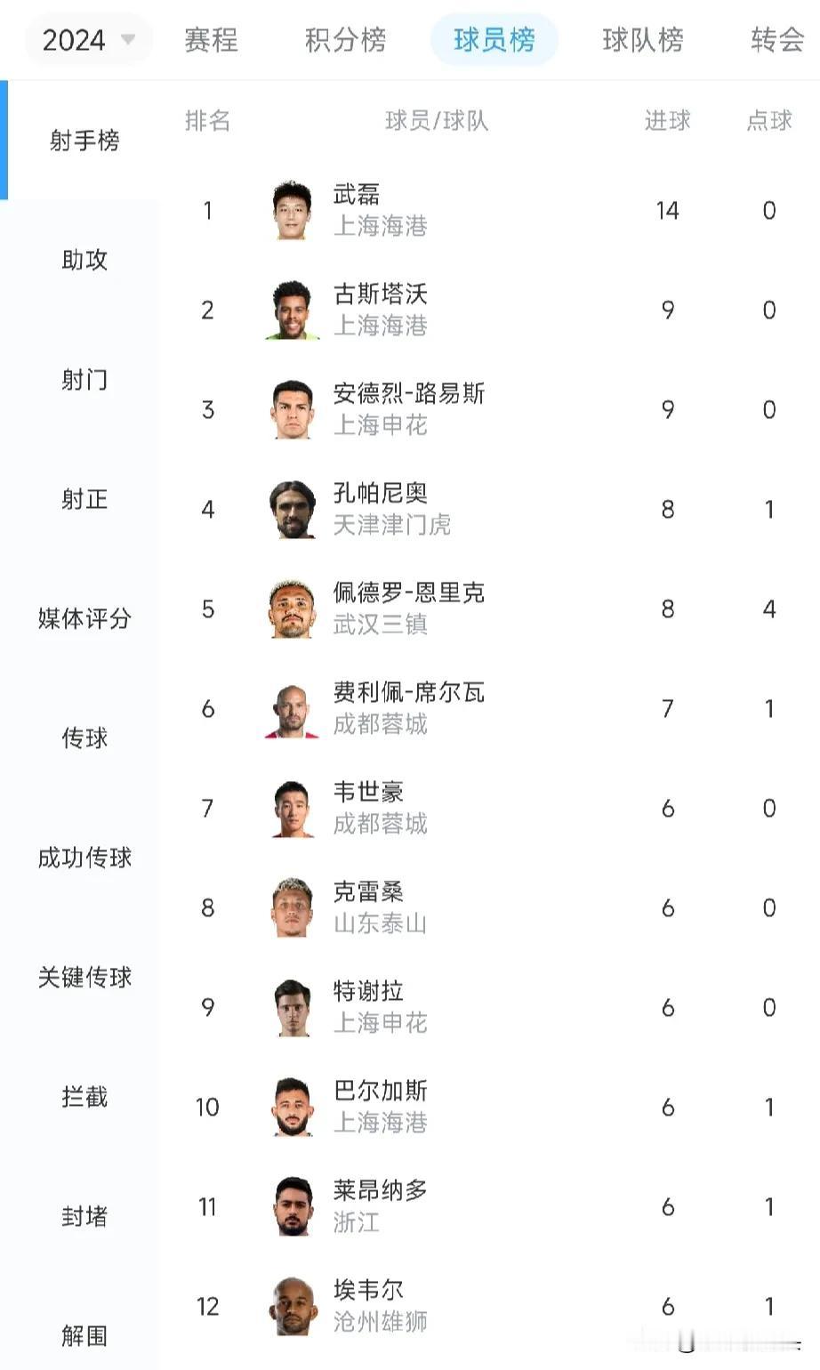 武磊到底有多强? 武磊——14球 青岛西海岸——14球 长春亚泰——14球 南通之云——13球 深圳新鹏城——13球 梅州客家——9球 青岛海牛——7球 武磊14球独占射手榜,中超有4支球队的全队进球数不及武磊!2支和武磊一样! 武磊虽然是本土球员,但他的能力远远超过外援,感觉现在的武磊比在西班牙人时还强!真的是越老越妖啊!