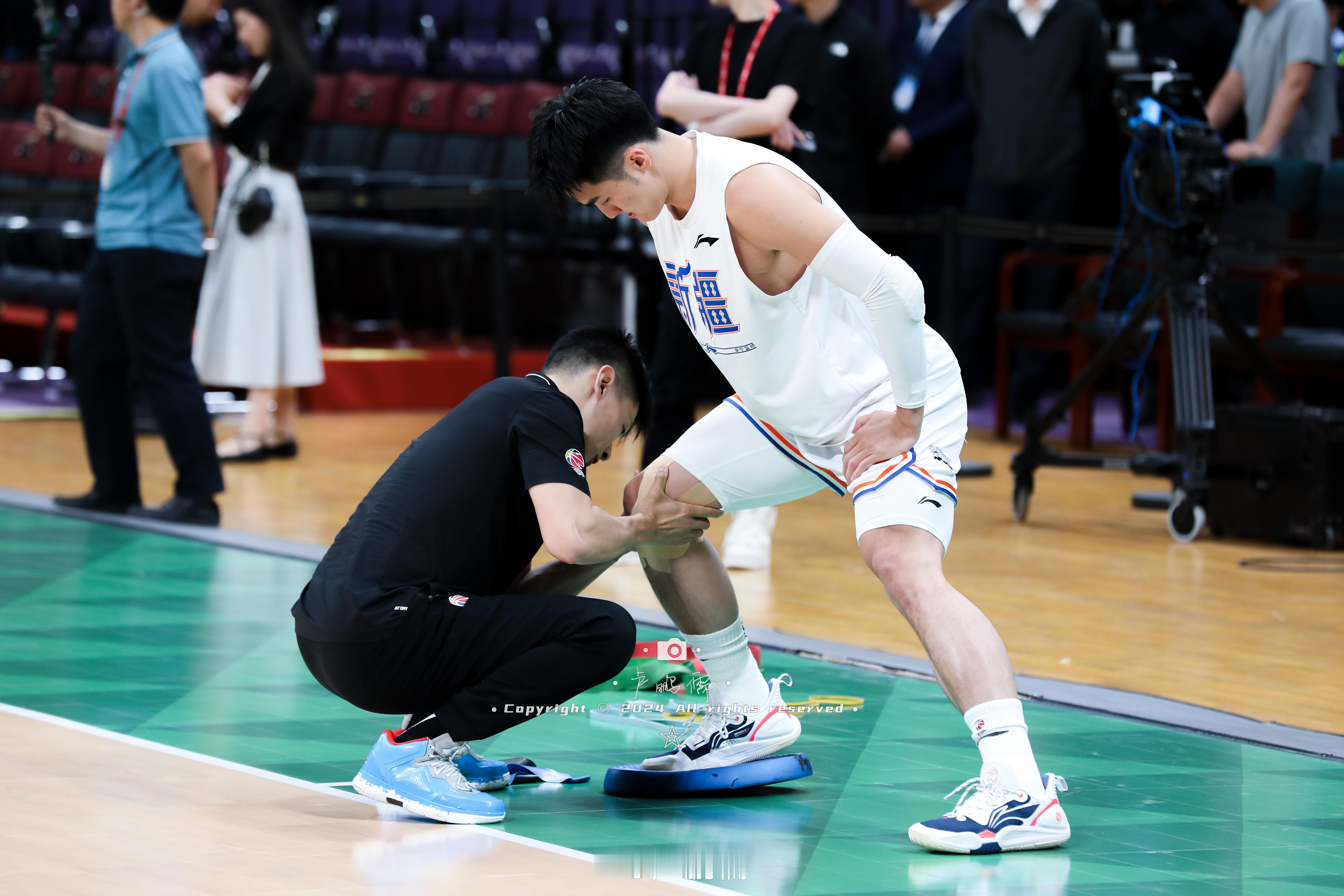 赵睿的右腿在季后赛期间的绷带一场比一场厚,再一次受伤前他投进一记三分,回到更衣室他说,“我当时腿都没知觉了,我都不知道这球咋投进的。”