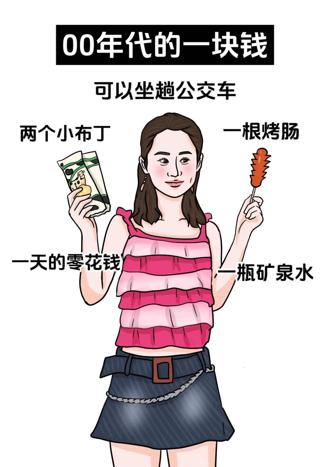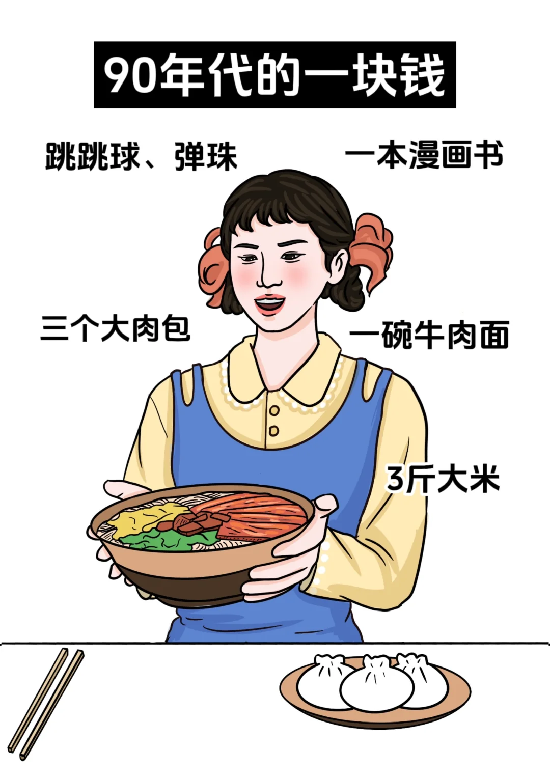 爷爷奶奶的那一代,1块钱够家里吃好久了。到了父母的那一代,1块钱能美美的吃一顿早餐。而我们的小时候,1块钱就只够吃点小零嘴了。