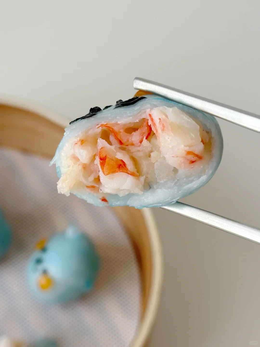 内馅儿:虾,马蹄,葱姜水,白胡椒粉,味精,香油,玉米淀粉