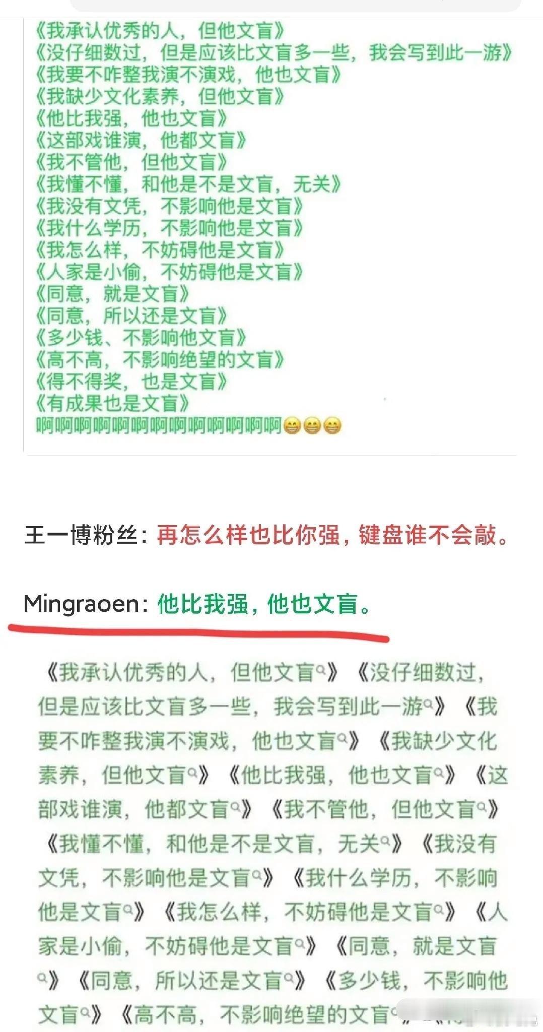 无论王一博的粉丝说什么,都表示同意,但是就是抓住自己的观点坚持到底!