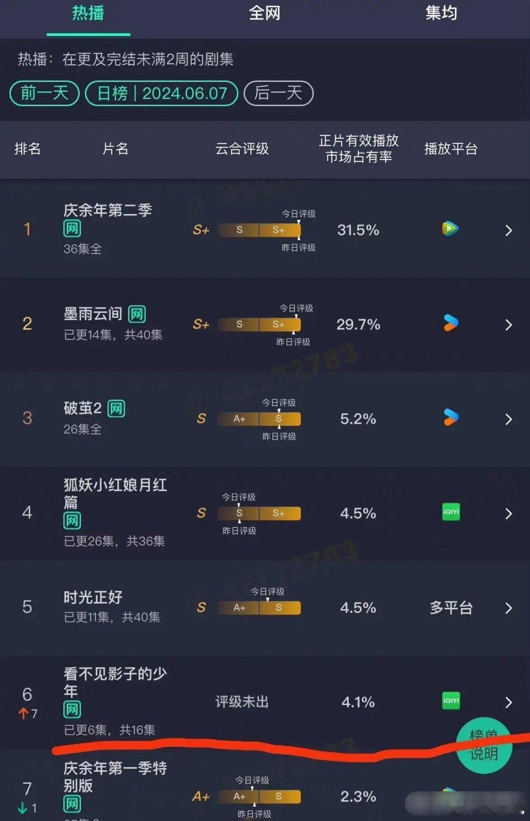 当日热度仅排第六,这部剧就是《看不见影子的少年》。