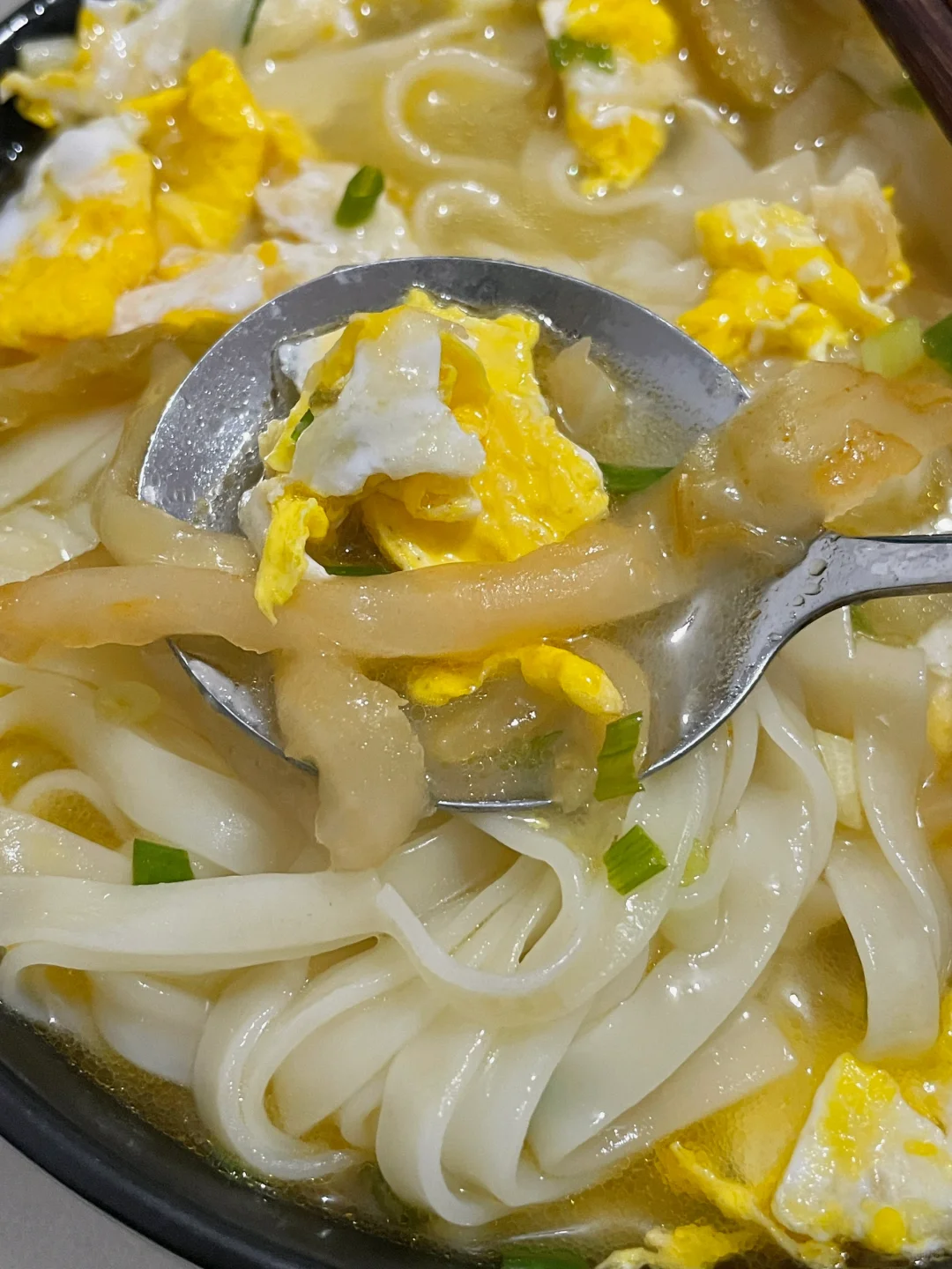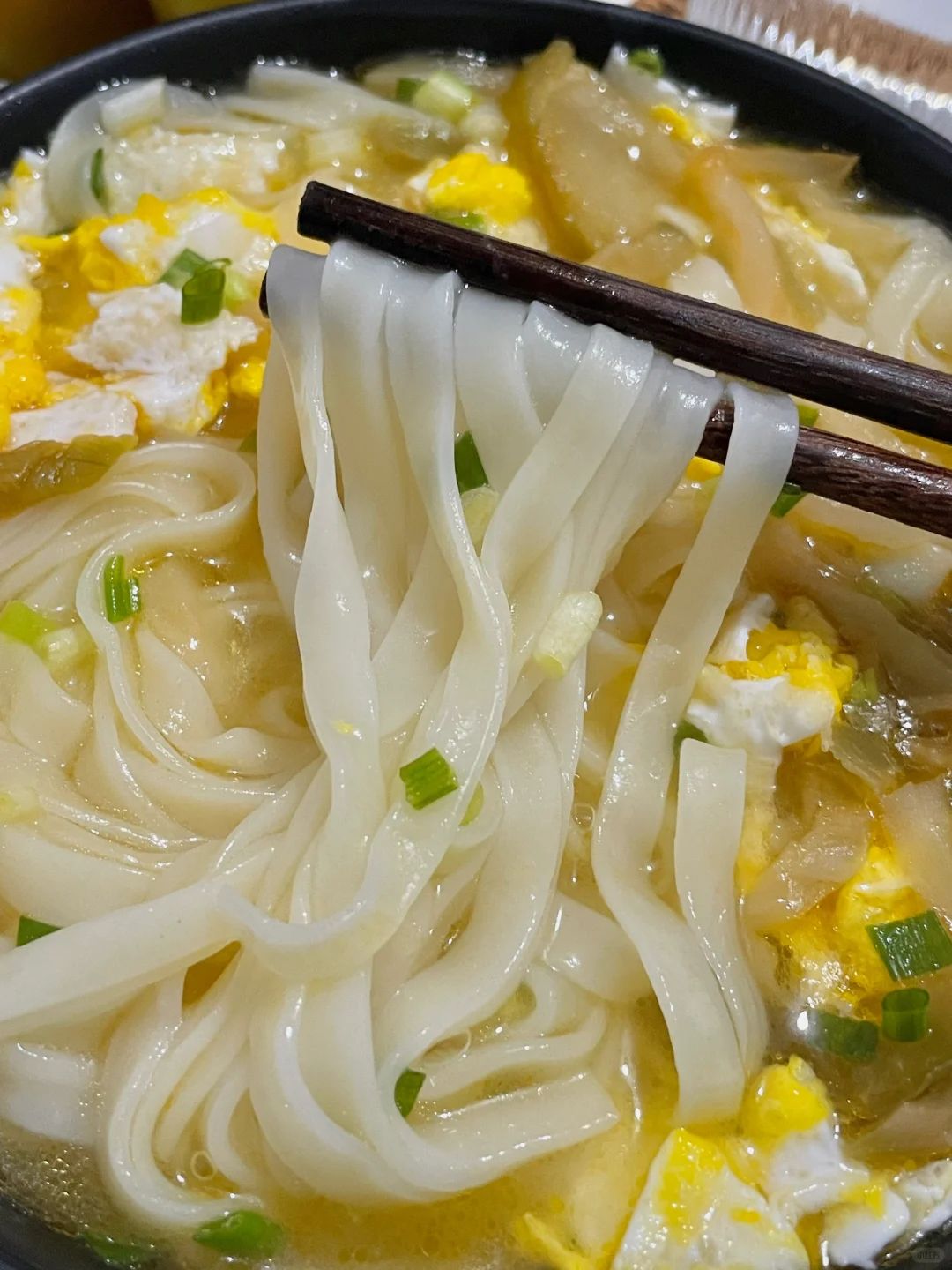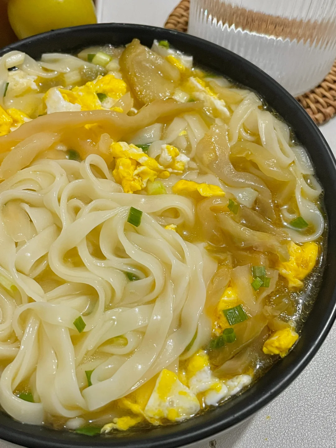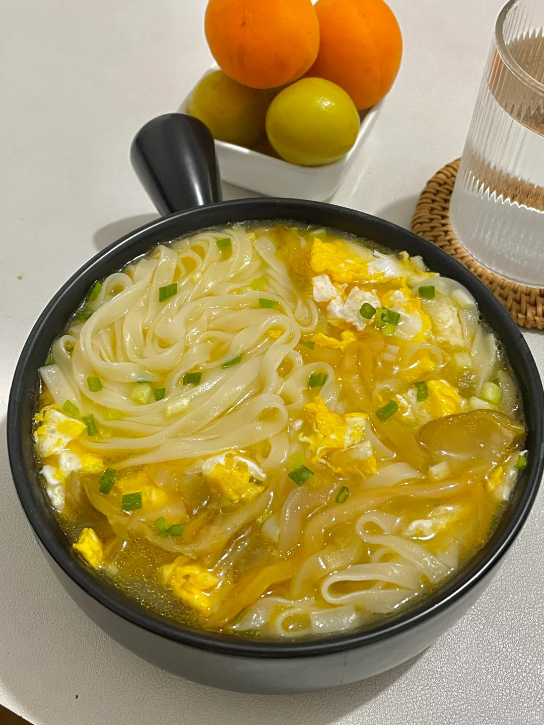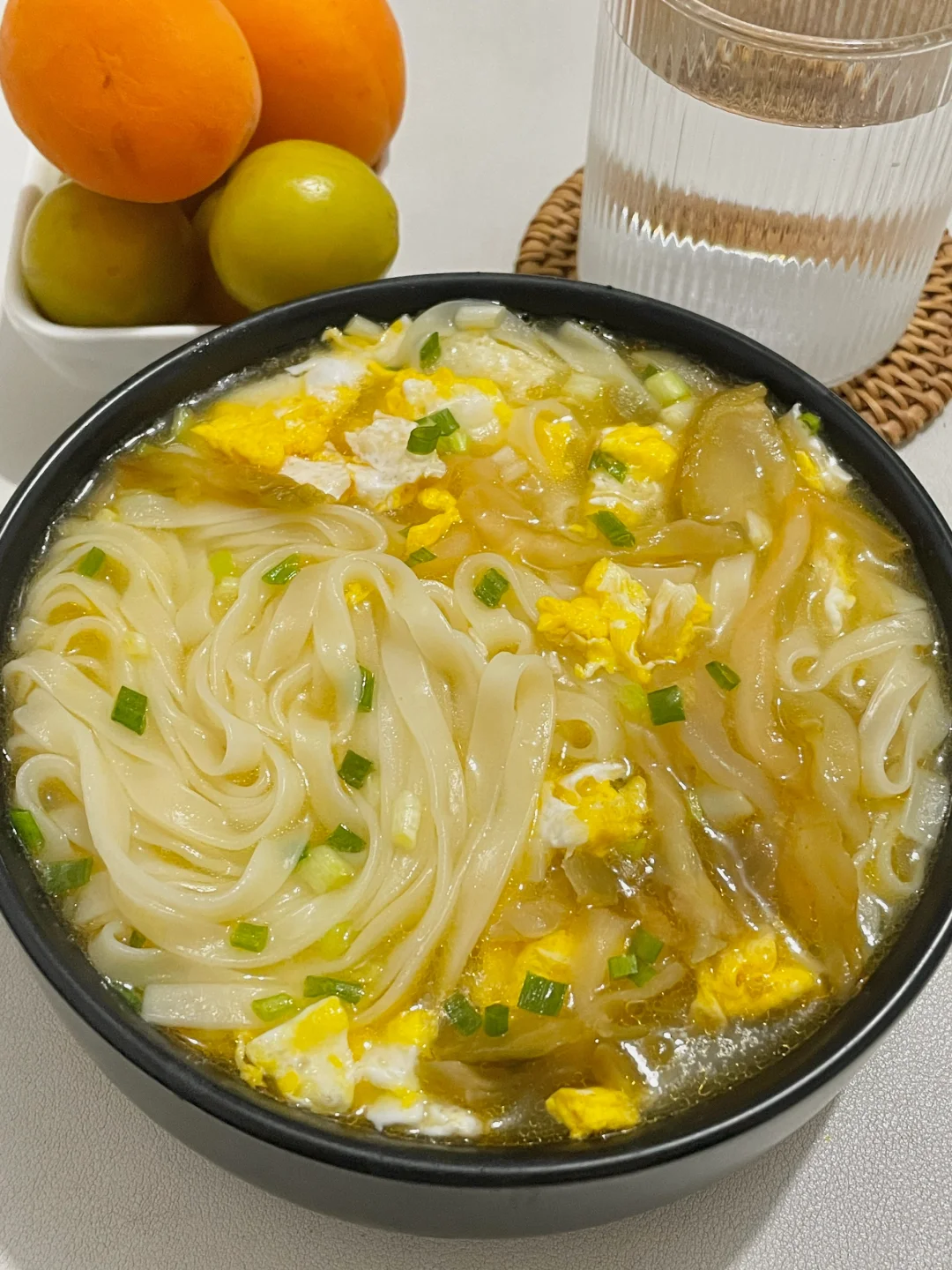 2️⃣加面条煮熟,撒葱花装盘即可。