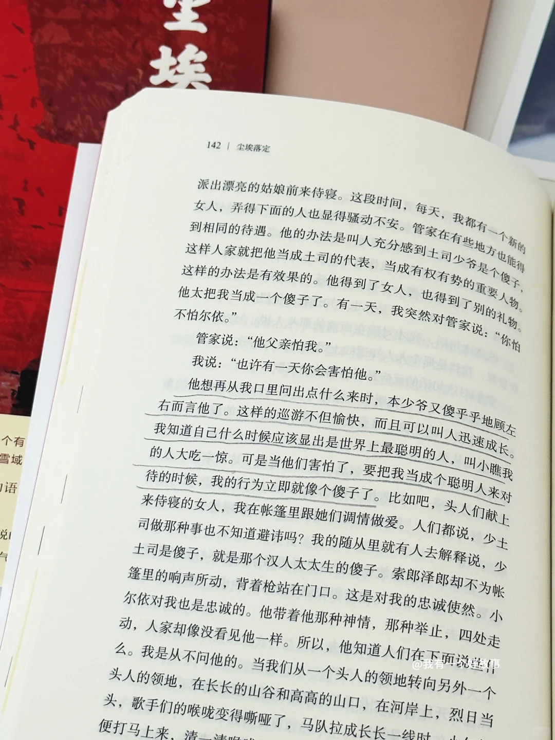 👍🏻阿来在讲述这个故事时,写的特别富有诗意,贯穿全书的除了藏族文化,还有很多神秘预言,一下子就把故事的传奇和诗意的朦胧融合在一起,让我不得不赞叹佩服!尘埃落定,如稀有美玉一般无暇!