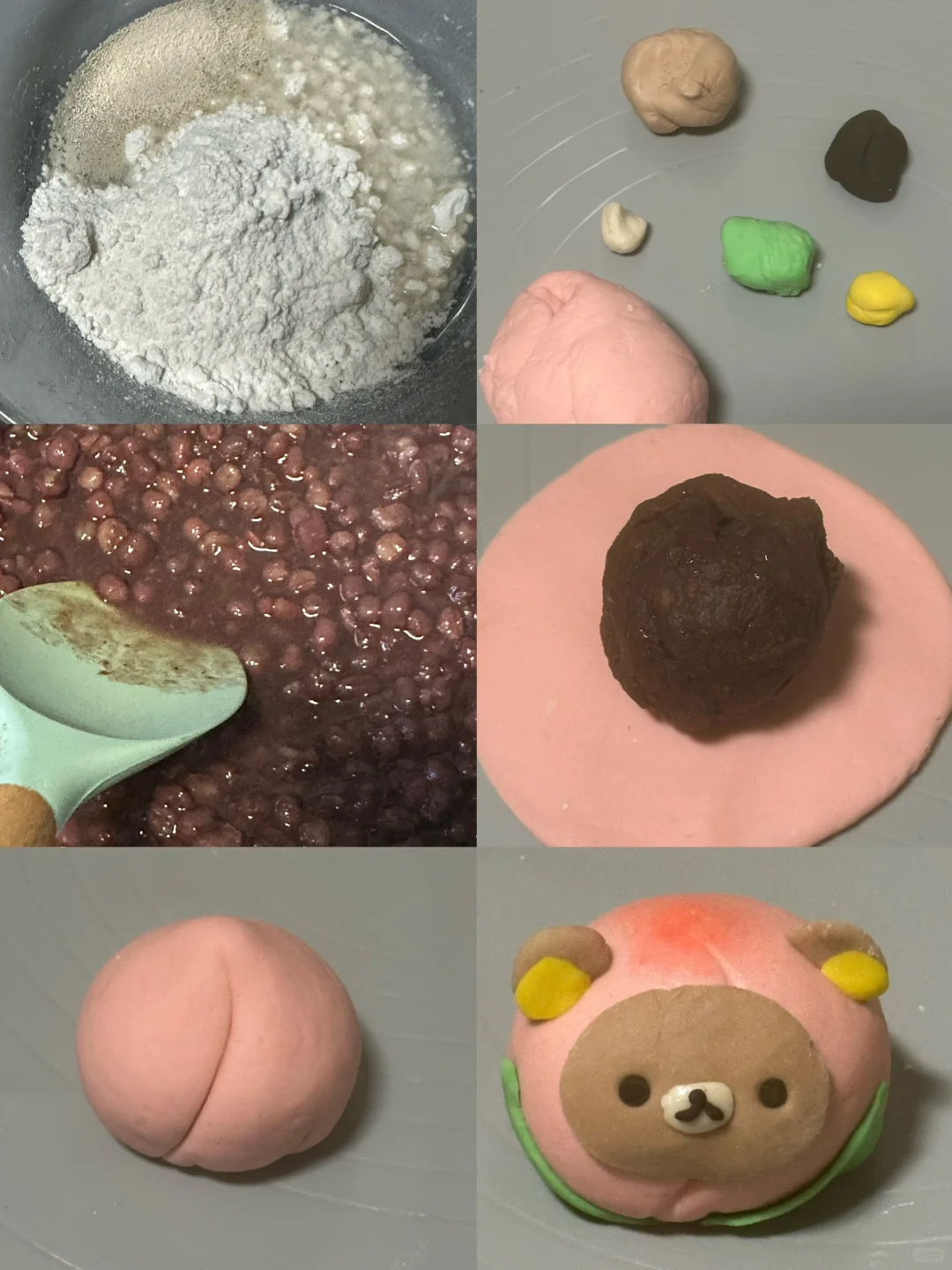 寿桃皮:55g面粉、30g水、1g酵母、调色(可可粉、色素)