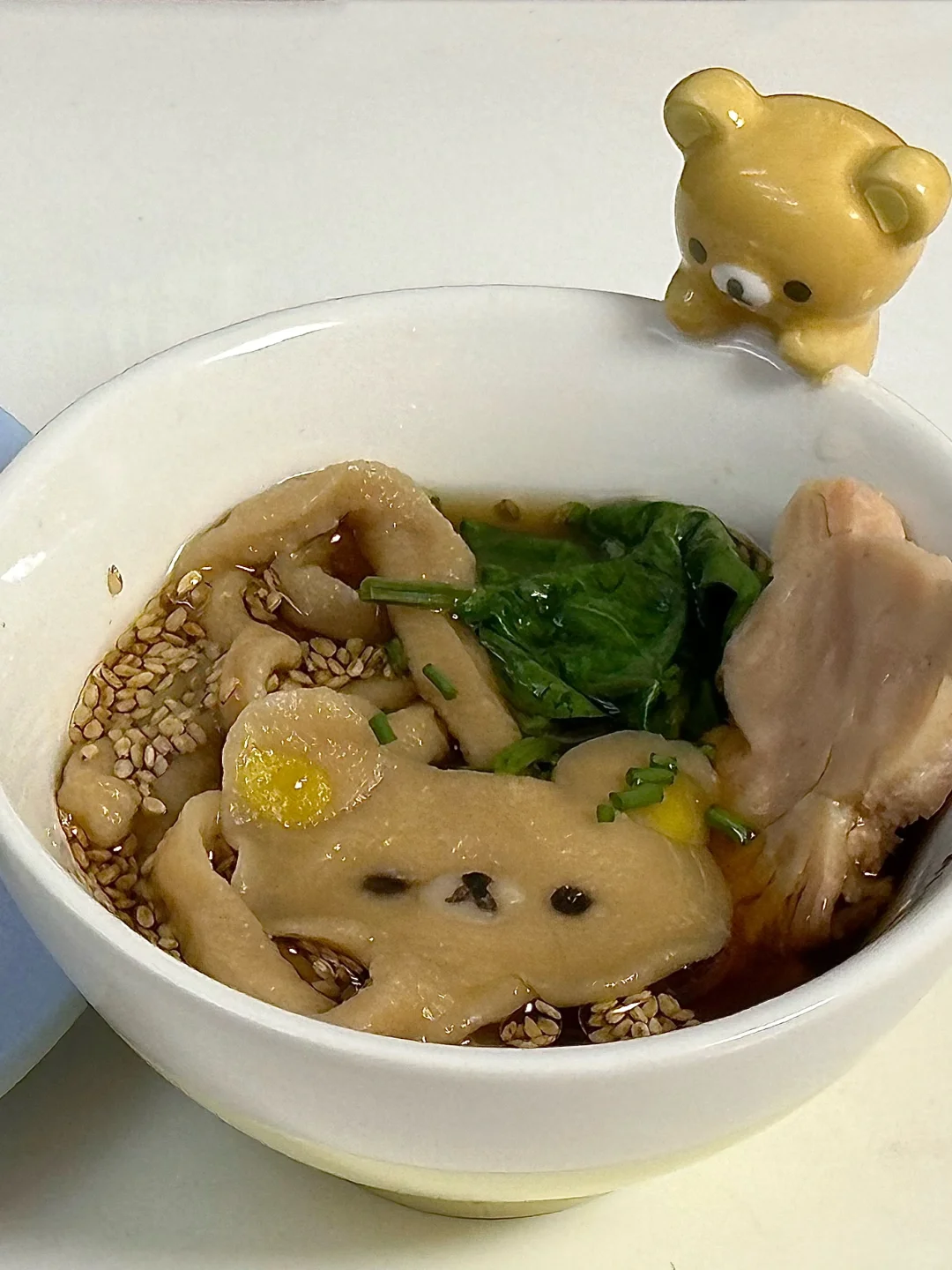 汤底:生抽、芝麻油、熟芝麻、葱、面汤