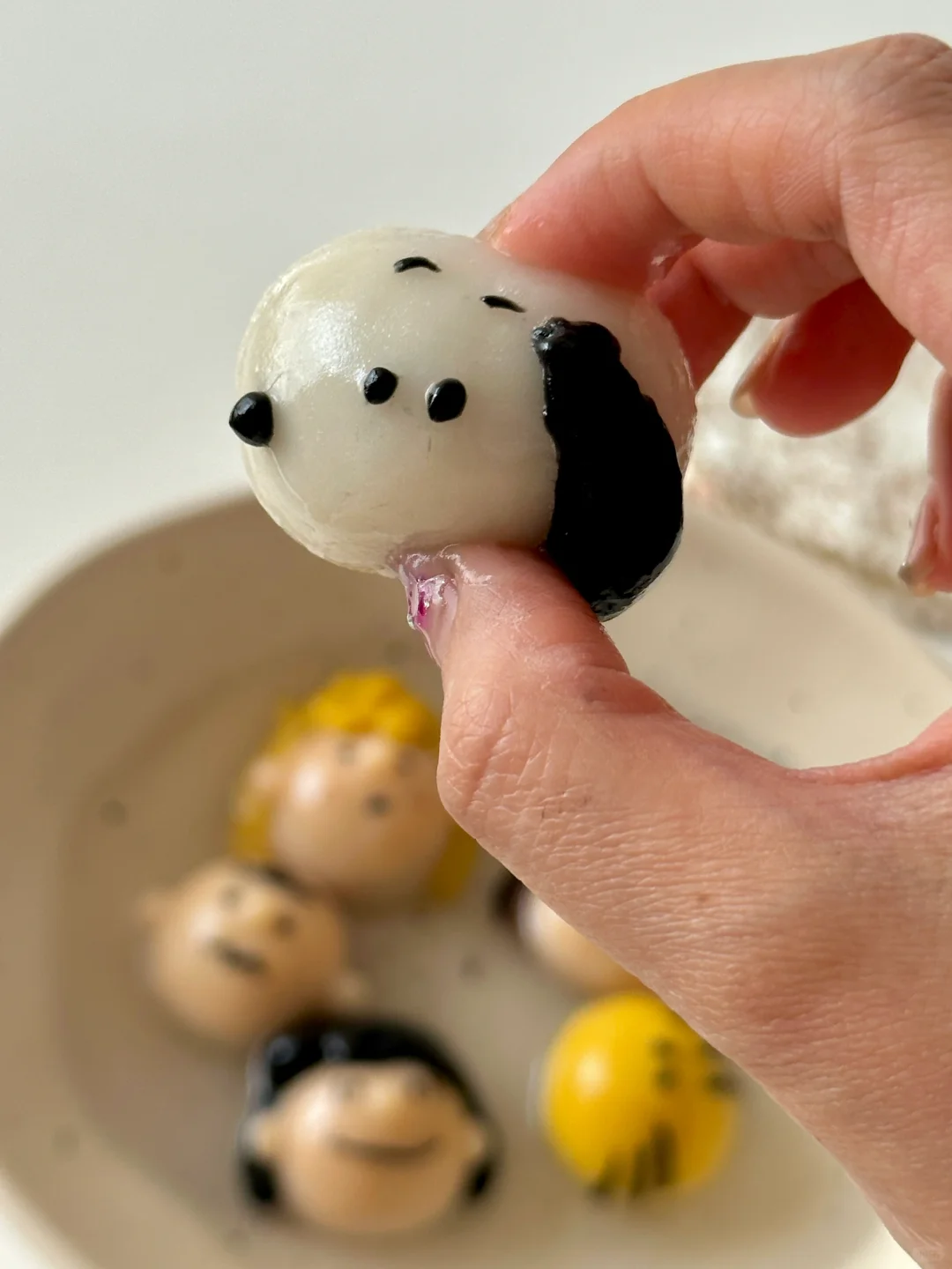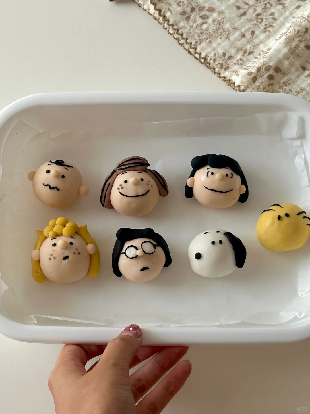 ④先捏发型再做鼻子耳朵,最后制作表情 (沾水更好粘合),没有技巧全靠耐心(热水烫过的面团具有很好的延展性,细节部分很好塑型)
