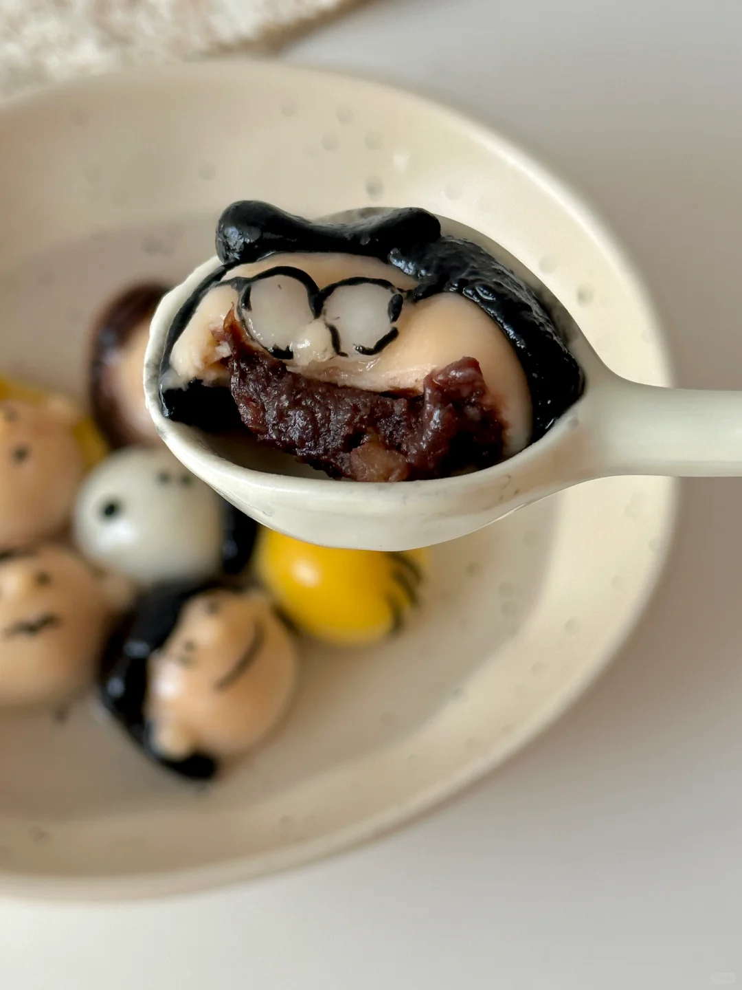糯米粉 105g,开水70g,自制红豆沙馅60g