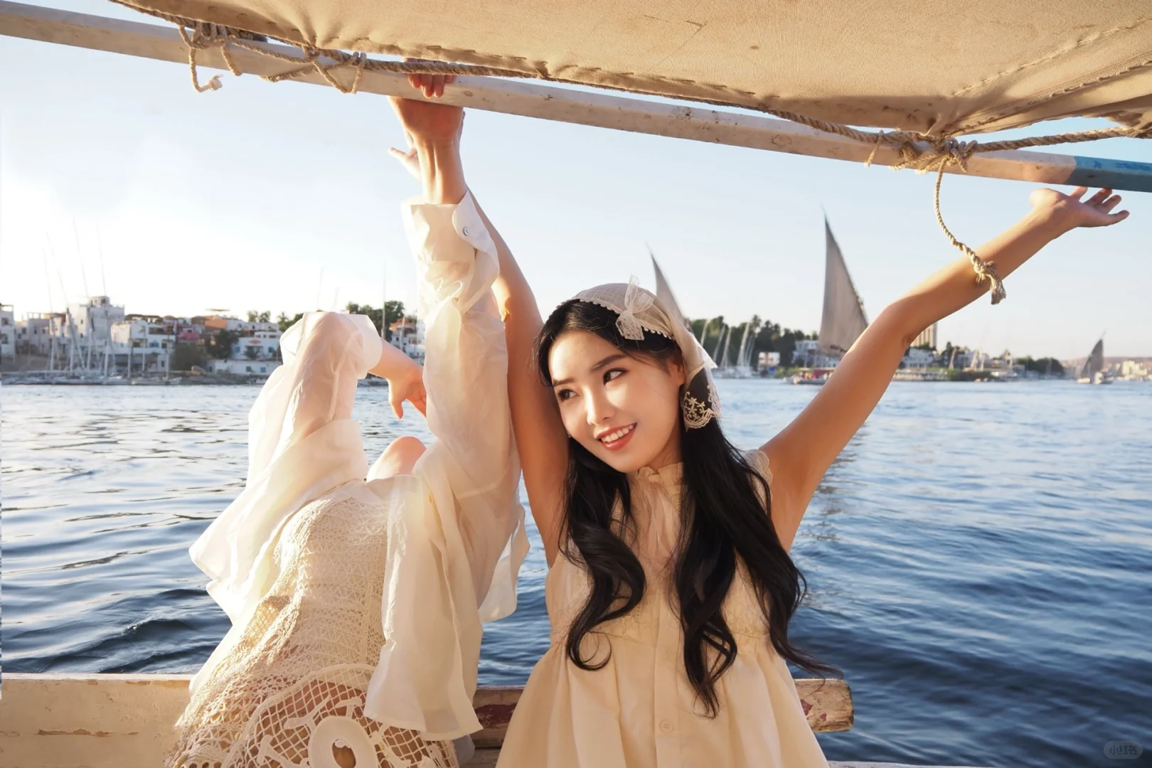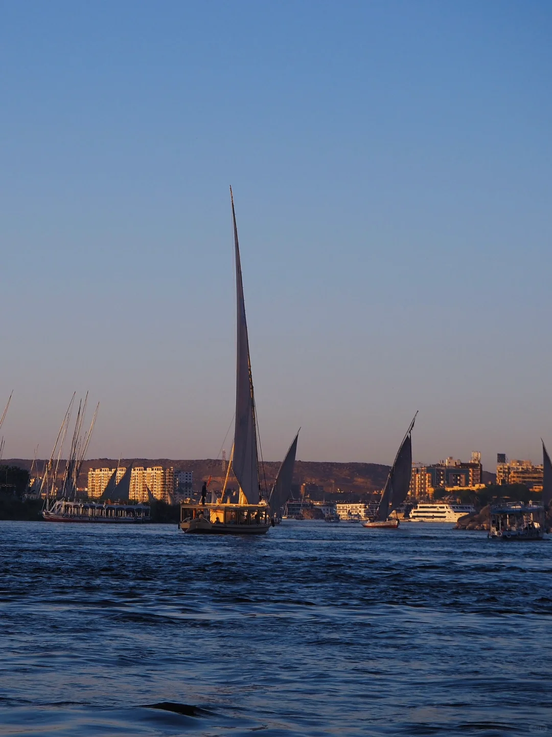 日落🌅时分,一定要去坐帆船⛵️,感受着尼罗河微风拂面,夕阳洒落在河面波光粼粼。三角帆船点缀湖面,自由随意穿梭在尼罗河上,浪漫且惬意。沉浸在这片古老的城市里
