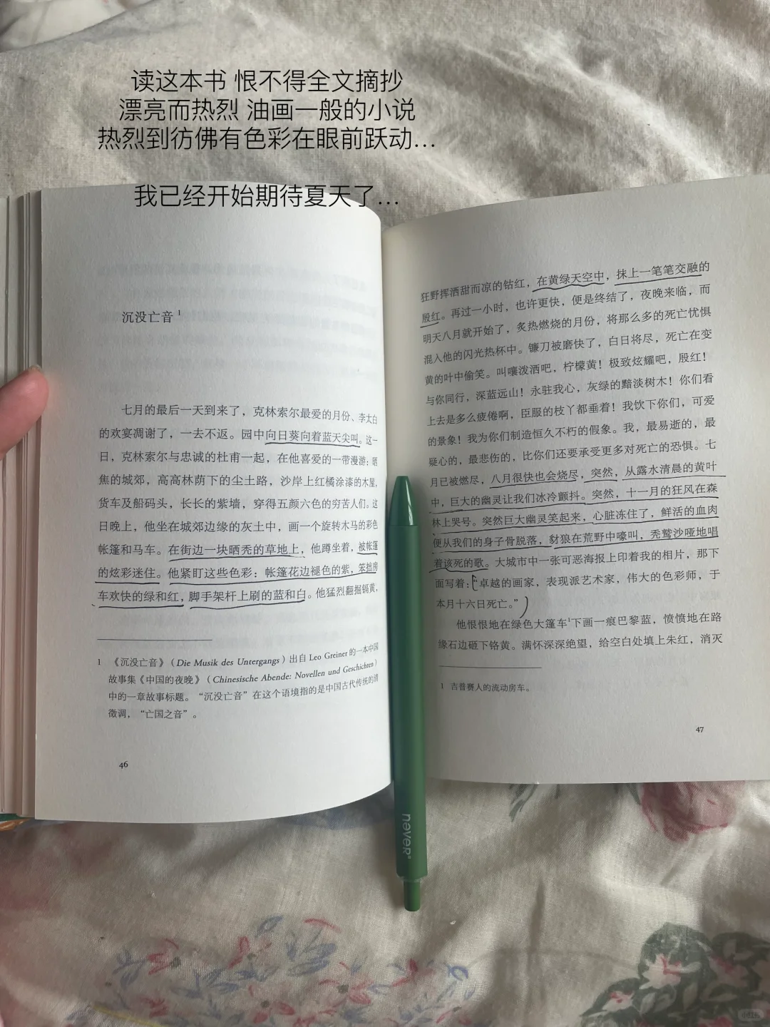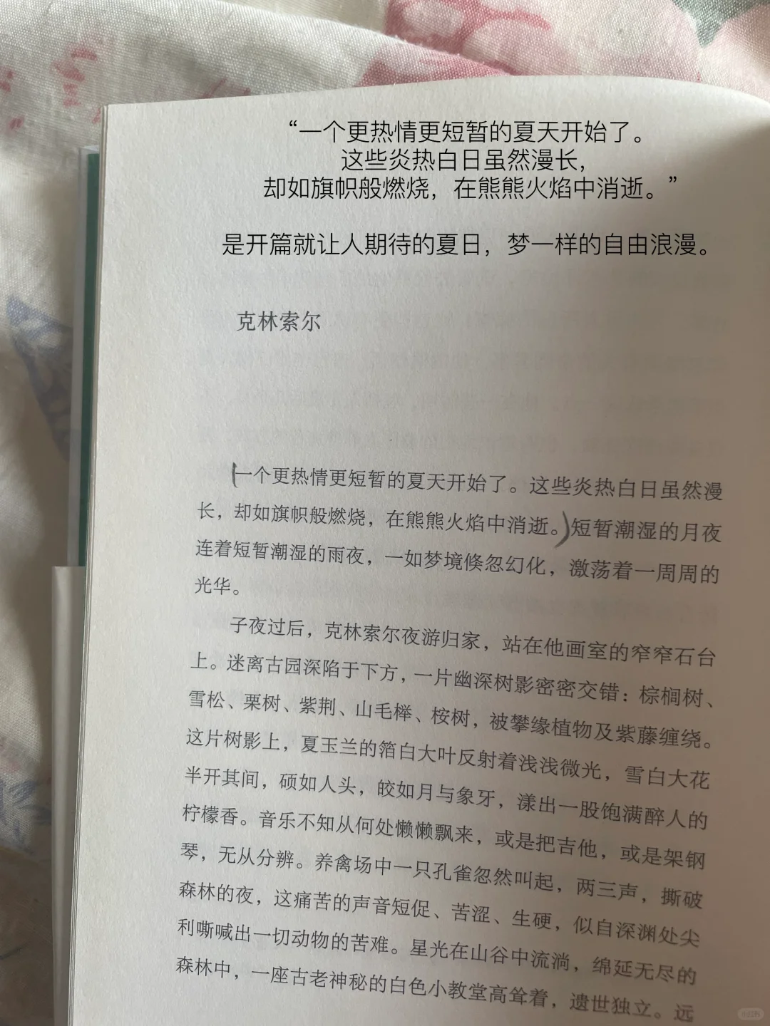 “一个更热情更短暂的夏天开始了。这些炎热白日虽然漫长,却如旗帜般燃烧,在熊熊火焰中消逝。”是开篇就让人期待的夏日,梦一样的自由浪漫。