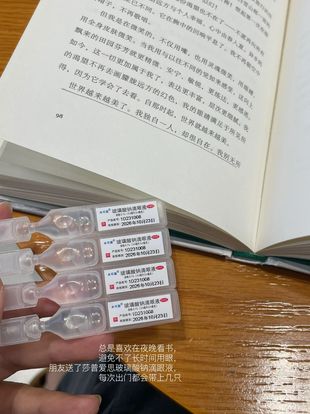 总是喜欢在夜晚看书,避免不了长时间用眼,朋友送了莎普爱思玻璃酸钠滴眼液,每次出门都会带上几只。呵护好我们的双眸,让我们都能清清爽爽的看世界。