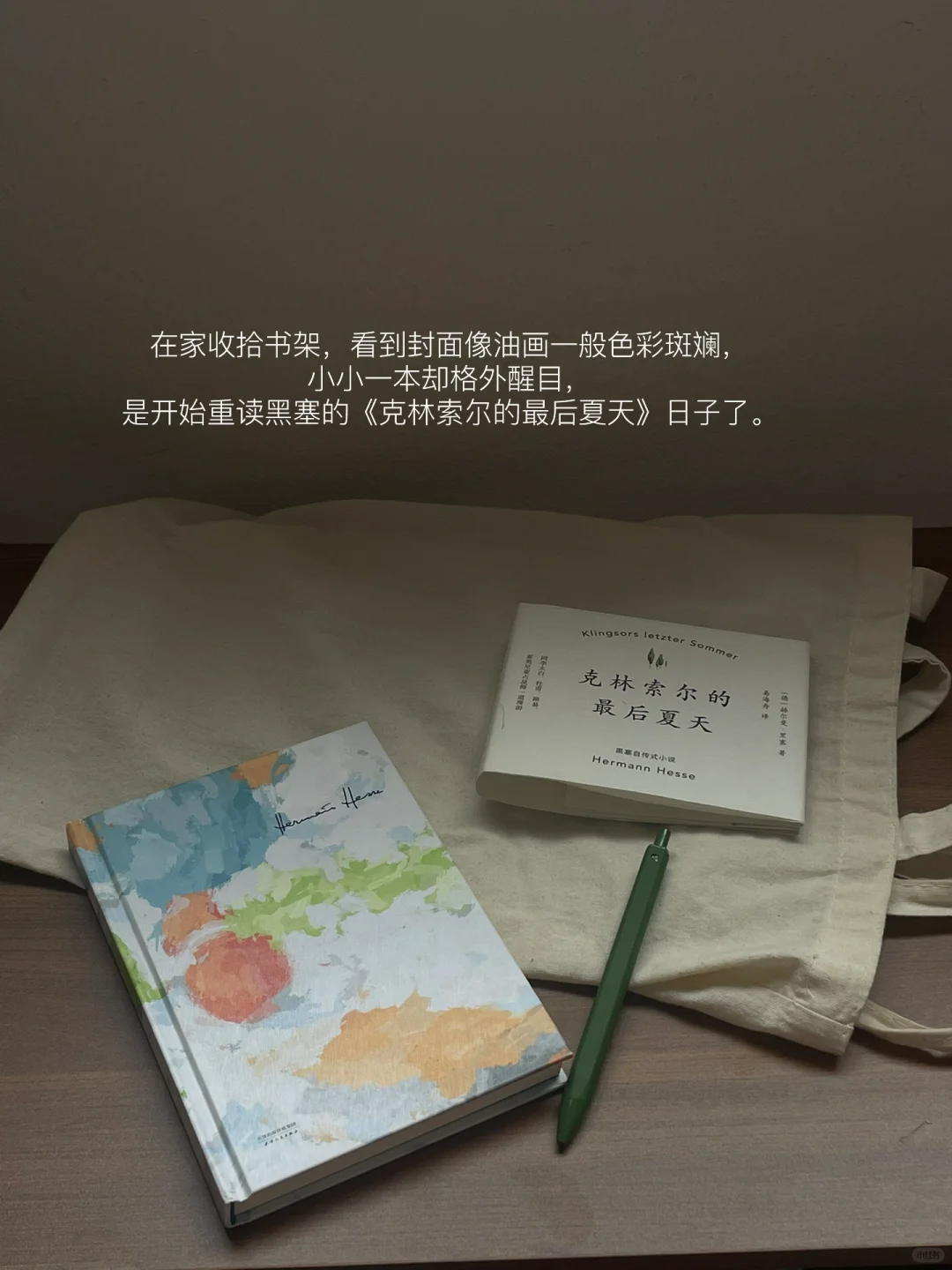 在家收拾书架,看到封面像油画一般色彩斑斓,小小一本却格外醒目,是想重读黑塞的《克林索尔的最后夏天》的日子了。