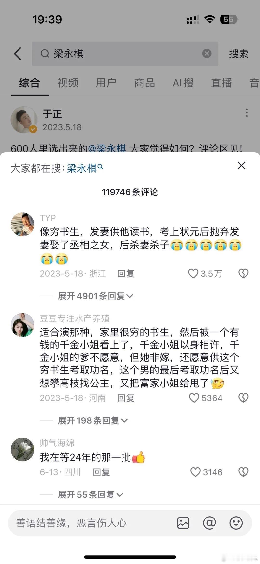 去年5月18日发的好像是梁永棋的定妆视频,文案让大家评价~热评内容和《墨雨云间》剧情相似度99%!!